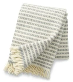 Lichtgewicht deken gemaakt van 100% wol van het eerste scheren van jonge schapen. De deken heeft een klassiek streeppatroon in eigentijdse kleuren.