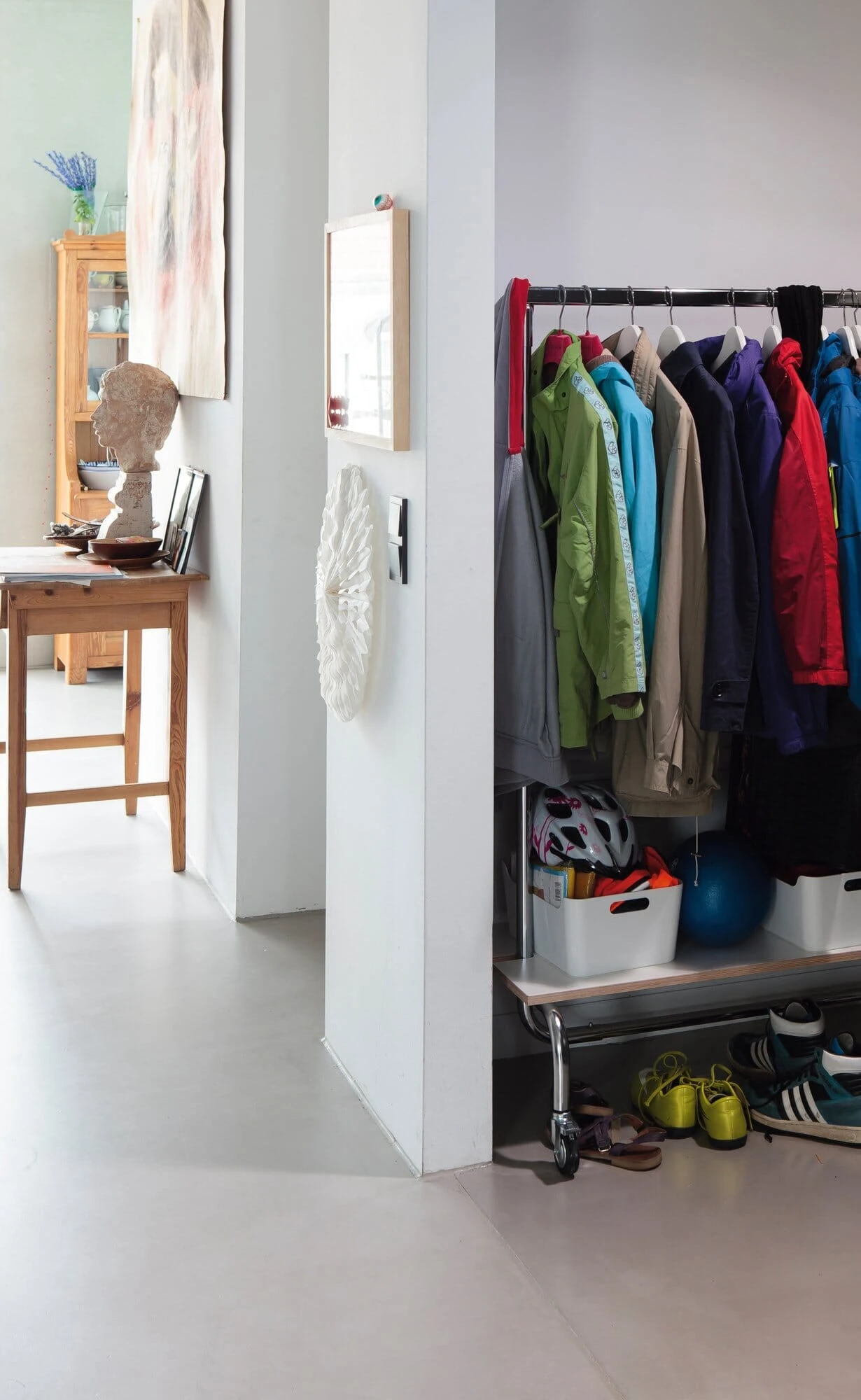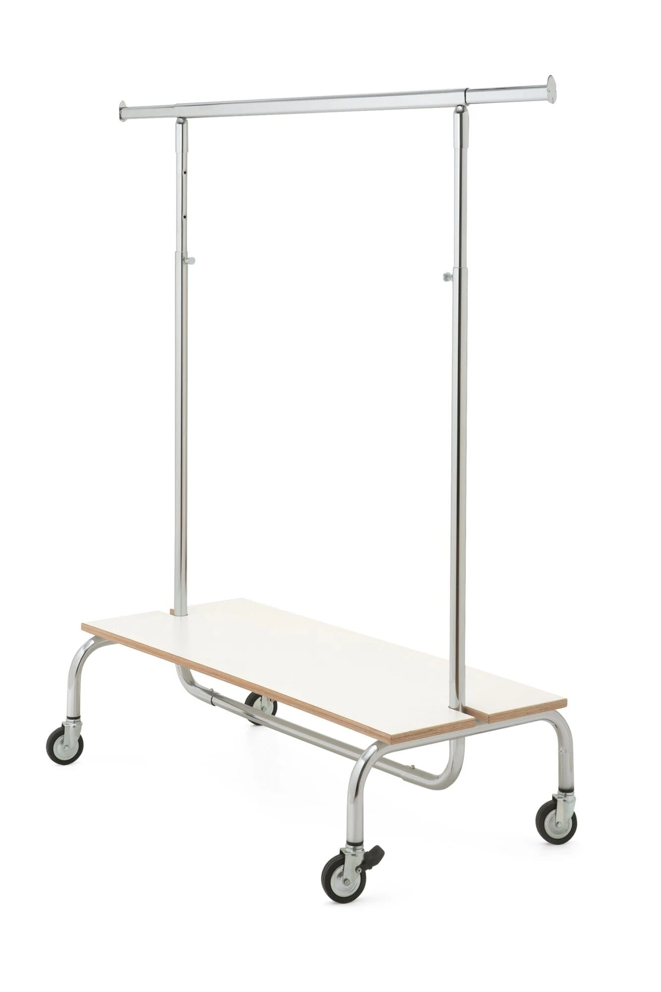 Aanvulling op het mobiele kledingrek PORTANT: opbergrek voor allerlei spullen. Schoenen, de doos met sokken en ondergoed en nog veel meer kunnen hier worden opgeborgen. Kan worden toegevoegd aan elke PORTANT kapstok.