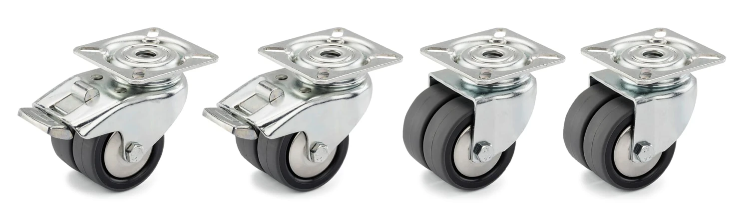 Twee vrij draaiende en twee vergrendelbare wielen die de Container Unit CGN mobiel maken. De voor de zelfmontage benodigde schroeven zijn bij de levering inbegrepen.