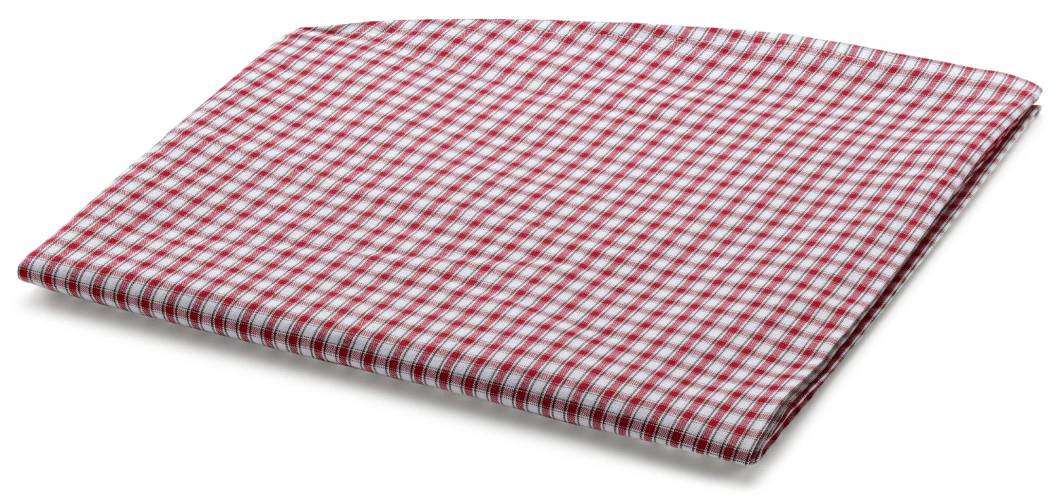 Van de traditionele weverij Vieböck in Helfenberg, Opper-Oostenrijk, komt dit rood-wit geruite ronde tafelkleed. Sinds 1832 is de weverij gespecialiseerd in de productie van de meest uiteenlopende stoffen, vooral van fijn linnen, want het Mühlviertel is een van de klassieke linnengebieden van Europa. Dit tafelkleed is echter geheel van katoen. Dankzij het fijne, getwijnde garen (Nm 70/2) en een vrij licht materiaalgewicht van 133 g/m2 is het canvasachtige weefsel bijzonder soepel en heeft het een zachte, mooie drapering.