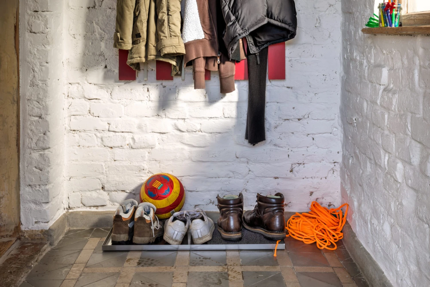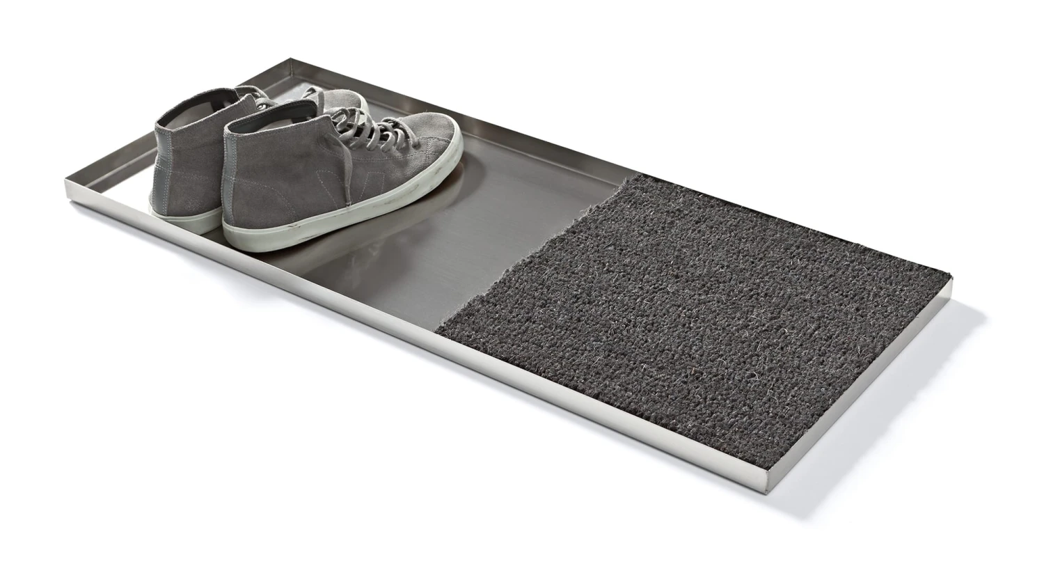 Een goede aanvulling op de gang en entree: TOM houdt drie paar schoenen naast elkaar. Natte leren zolen drogen bijzonder goed op de kokosmat. Rubberen voetjes zijn inbegrepen om gevoelige vloeren te beschermen.