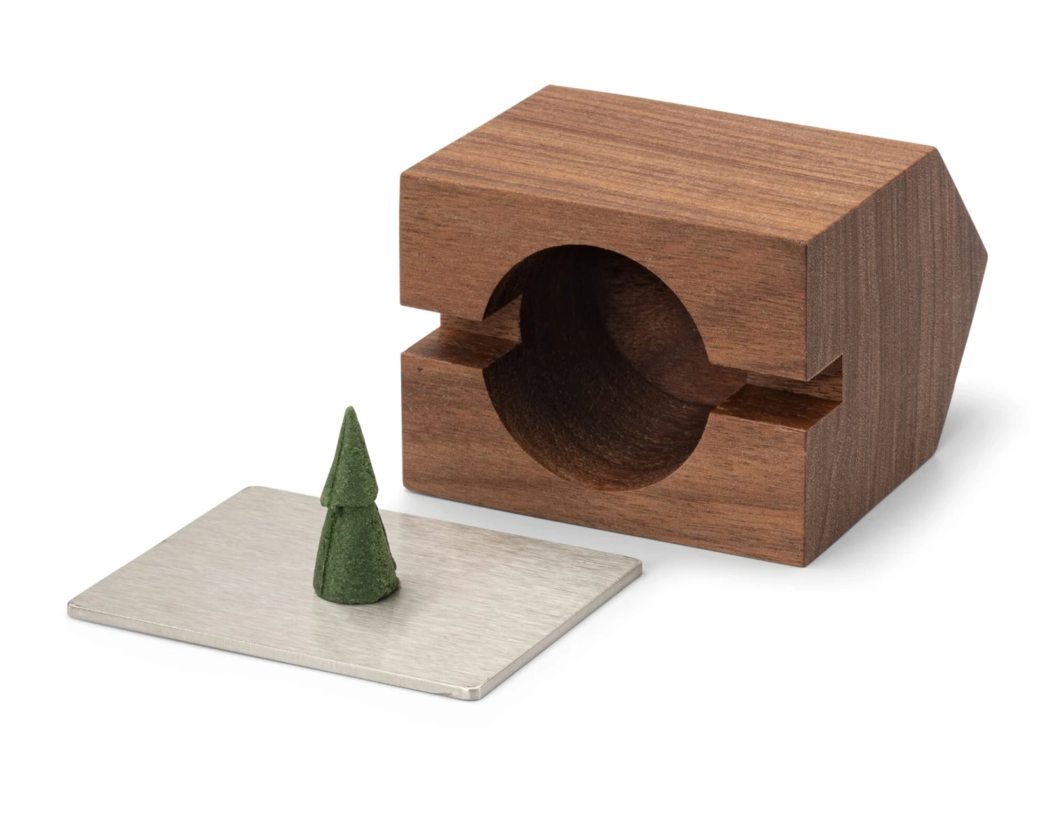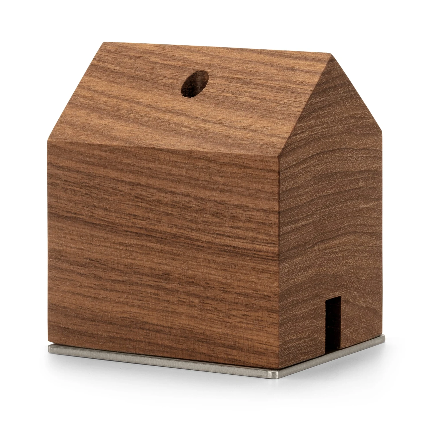 Onopvallend glijdt het huisje in het zicht terwijl het de geur van de wierookkaars door de kamer verspreidt. Zoals het een goed geventileerd gebouw betaamt, wordt de rook afgevoerd via het gefreesde uitlaatgat in het dak. Ontwerper Jan Hartmann heeft bij het ontwerp van deze rokerij gekozen voor een traditionele bouwmethode: Voordat de schoorsteen kwam, werd het huis in het Zwarte Woud gebouwd als een zogenaamd rookhuis. Boven de open haard verspreidde de rook zich onder het plafond, waar de ham werd opgeslagen om te worden gerookt, en ontsnapte uiteindelijk via de rookkamer. Naast de gewijzigde functie gaf Hartmann de rokerij ook een nieuw uiterlijk dat met zijn puristische vormgeving decoratief past in elk hedendaags interieur. De rokerij is gemaakt uit één stuk massief hout in een werkplaats in het Zwarte Woud. De levering omvat drie wierookkaarsen met een fijne sandelhoutnoot; vervangers en geuralternatieven zijn te vinden in ons assortiment (onze wierookkaarsen van normaal formaat passen erin).