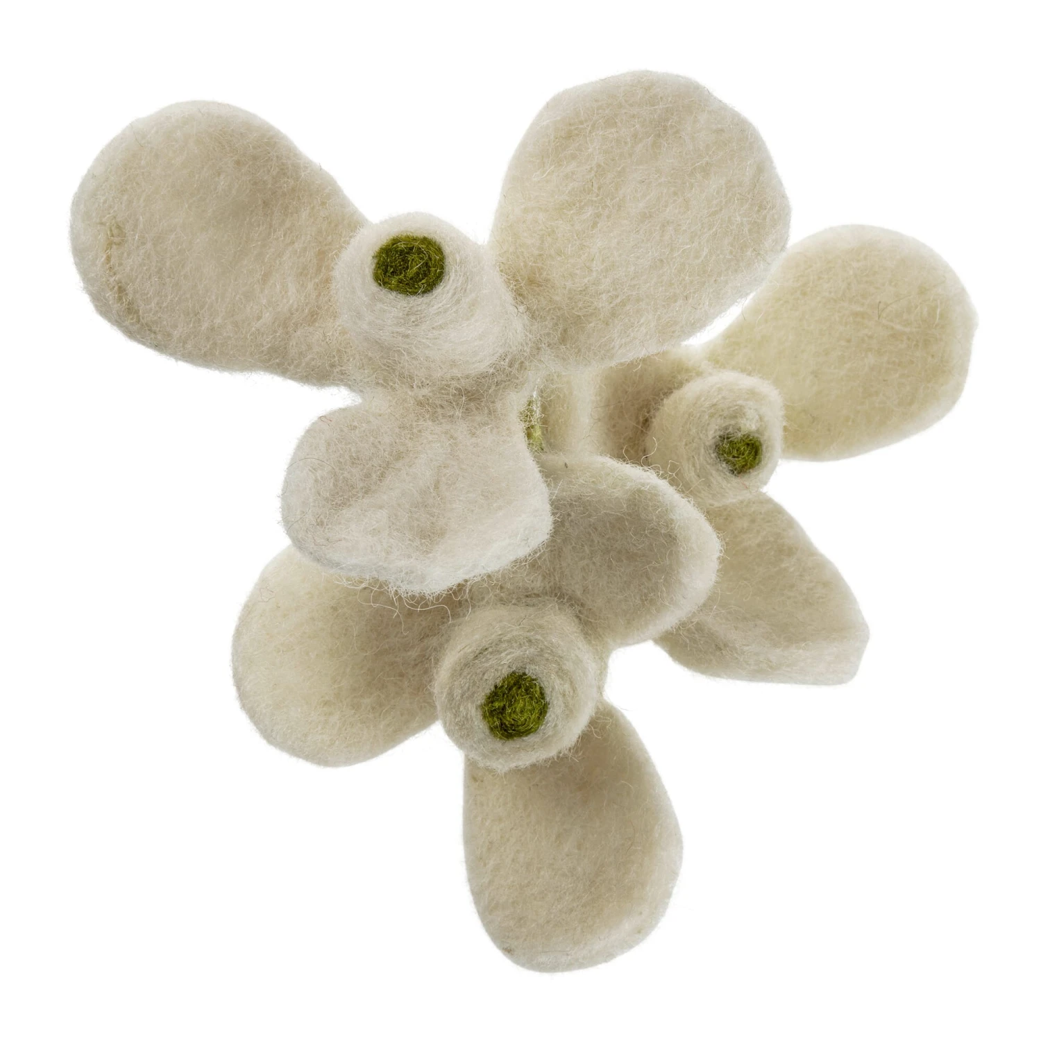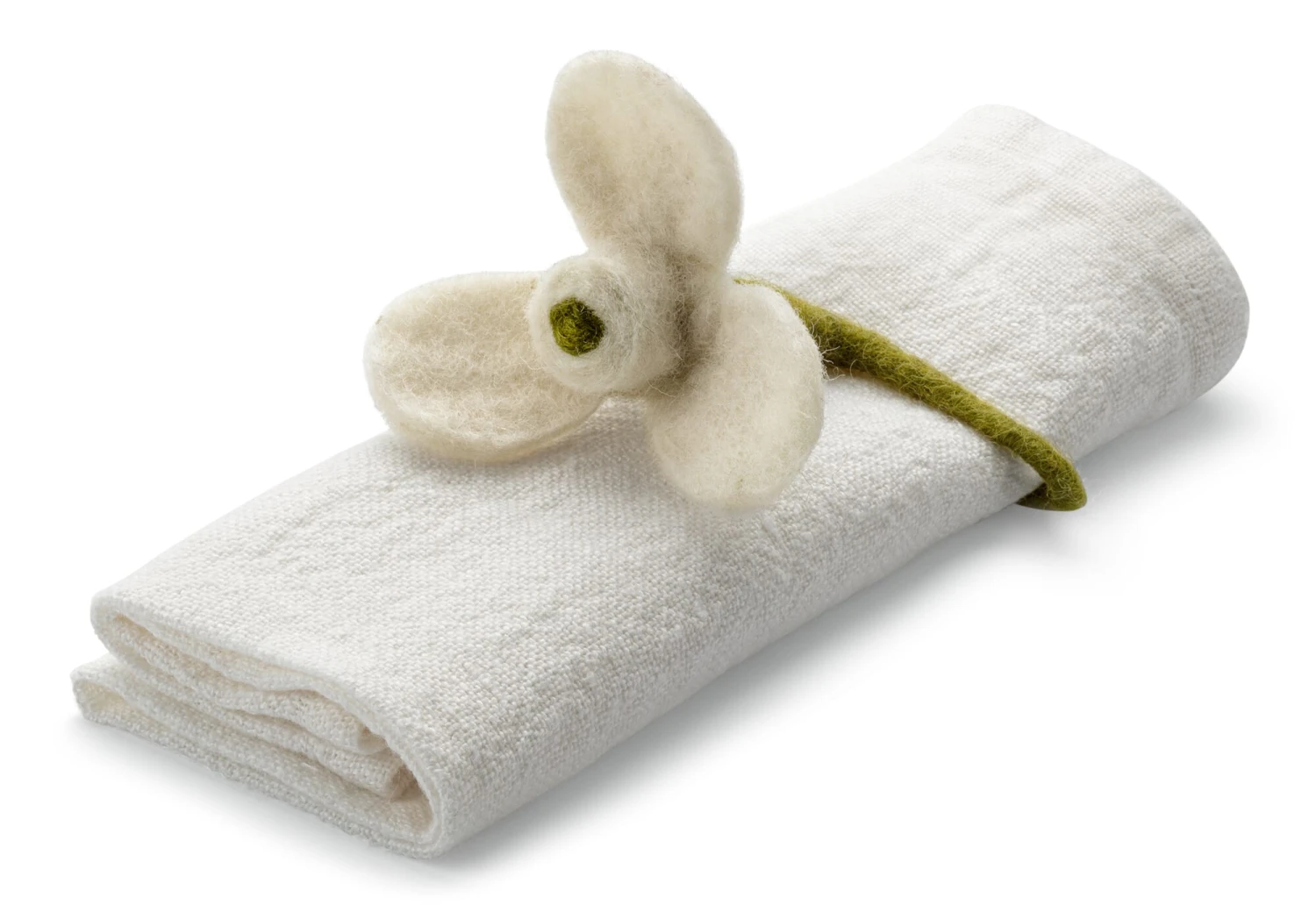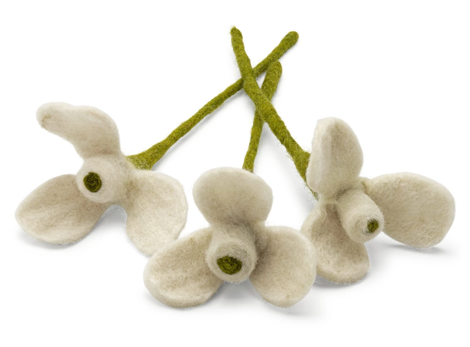 “Maar ze had meer kracht in zich dan ze wist. Joy and faith in summer made her strong …” is hoe Andersen’s sprookje “Het sneeuwklokje” het tere bloemetje beschrijft. Het sneeuwklokje is inderdaad de voorbode bij uitstek van de lente: als een van de eerste bloeiende planten produceert het zijn zuiver witte klokvormige bloesem en houdt het stand, zelfs tegen sneeuw en ijs. Deze sneeuwklokjes, die met de hand worden gevilt van zuivere Nieuw-Zeelandse wol, zijn net zo sterk. Ze zijn niet alleen bestand tegen vorst, maar ook tegen verwelking en knikken je blijvend toe: vanaf de vaas of als servetring, als cadeau-ornament of als eenzaam souvenir dat onwrikbaar de komst van de lente inluidt.