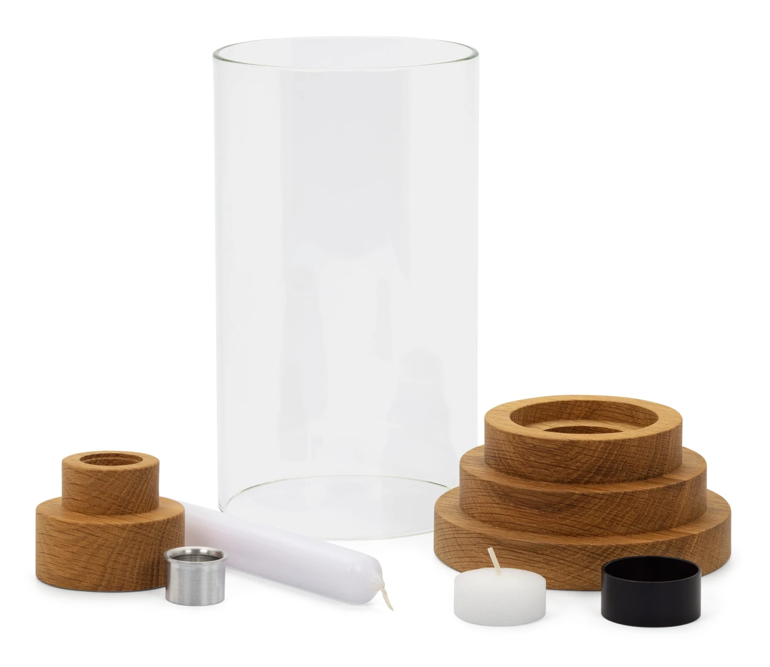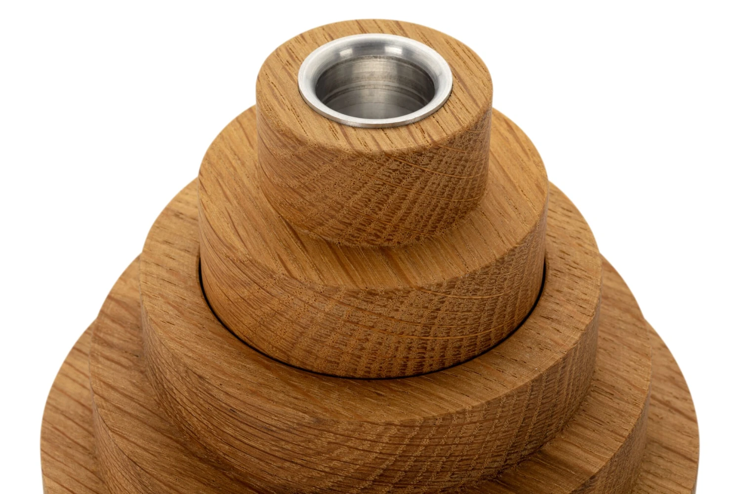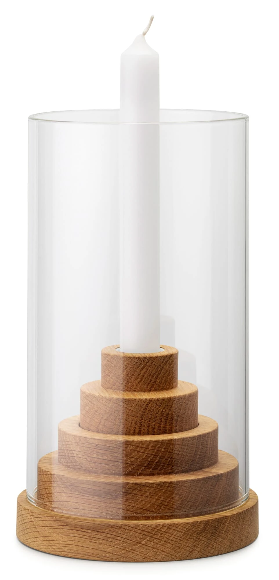 In een werkplaats in het Zwarte Woud wordt de kaarsenhouder van de traplamp netjes uit het massieve hout van eikenhout gedraaid, geschuurd en ten slotte geolied. Dankzij de doordachte constructie en de nauwkeurige vervaardiging kan de bovenste trede worden verwijderd, zodat ook pilaarkaarsen ongehinderd kunnen worden geplaatst. Bij de productie legt het kleine familiebedrijf bijzondere nadruk op de regionale herkomst van het hout. Dankzij de precies passende glazen cilinder bewijst de traplamp zich ook als een echte lantaarn. Met een rustige vlam verspreidt hij zijn sfeervolle gloed niet alleen in de kersttijd, wanneer Rudolph met rode neuzen, de kerstman of het Christuskind door de kamer suizen, maar het hele jaar door, binnen en buiten.