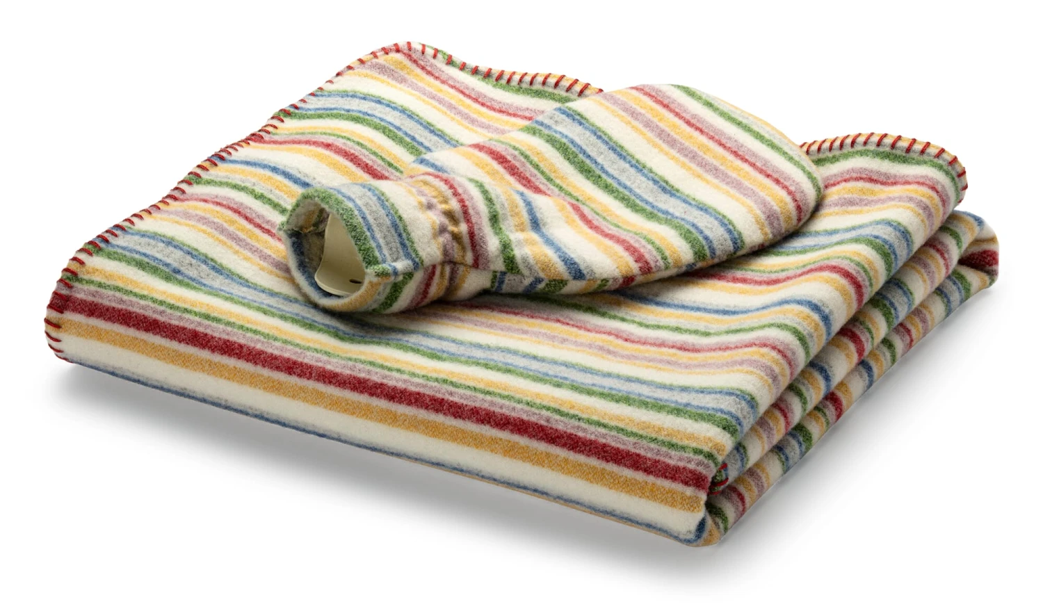 Niet alleen sinds Linus uit Peanuts weten we: Leven zonder eigen deken is mogelijk, maar ongemakkelijk.usedNet zoals Linus niet te vinden is zonder zijn knuffelhoekje, nestelt ook ons kroost zich graag in de zachte, verwarmende geborgenheid van een wollen dekentje: in de beginnende kilte van een zomeravond op het terras, op de bank tijdens een gezamenlijke gezinsavond, op bed tijdens het lezen en voorlezen en zelfs tijdens de reis, wanneer de frequentie van de vraag “Wanneer zijn we er?” afneemt en de zwaarte van de oogleden toeneemt.Deze kinderdeken is niet alleen qua afmetingen afgestemd op de jeugd, maar is vooral dankzij het natuurlijke materiaal het hele jaar door een metgezel: geweven van fijne merinowol is hij aangenaam warm en tegelijkertijd zo ademend en temperatuurregulerend dat misschien de persoon bij de zomerse tuinbarbecue, maar zeker niet uw kind, doorweekt raakt van het zweet. De deken van merinoswol is typisch robuust en slijtvast, en met stoïcijnse waardigheid en kalmte kan hij zelfs tegen een stootje als het laatste stukje wordt uitgetrokken om lekker tegenaan te kruipen. En last but not least zorgen de netjes gebonden randen ervoor dat de wollen deken zijn vorm en omlijsting behoudt.
