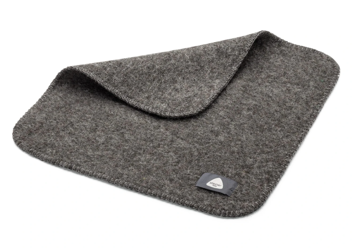 100% scheerwol (basisgewicht 530 g/m²), herkomst Oostenrijk. Afgewerkt met wolgaren in bijpassende kleur. Gemaakt in Oostenrijk. 43 × 43 cm. Gewicht 100 g.