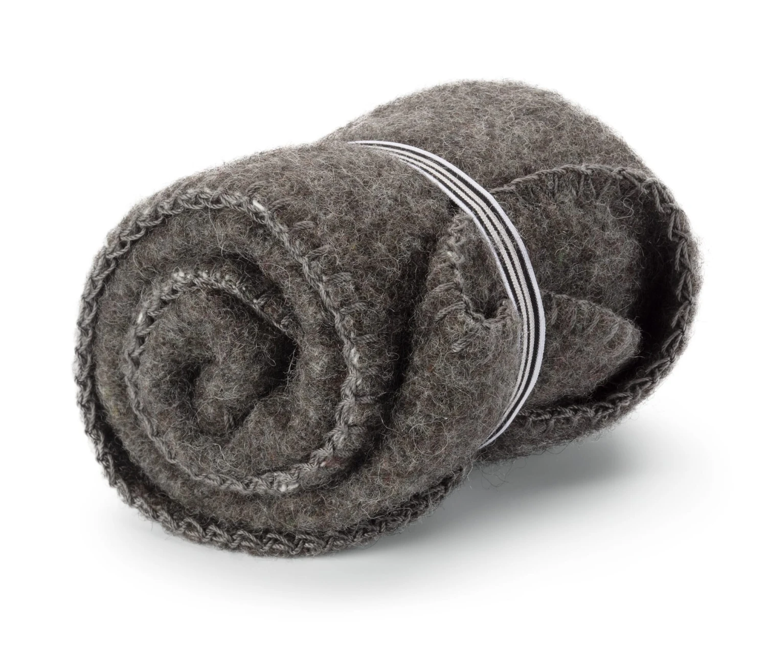 Met deze stoelhoes zit u overal warm en zacht, ook onderweg. Gemaakt van dichte, slijtvaste scheerwol verandert hij bijna elk oppervlak in een comfortabele zitplaats die altijd warm is – op koelere avonden op de balkonstoel of tuinbank, bij picknicks, feestjes en concerten, of tijdens een pauze van het wandelen. Na het weven wordt de stoelbekleding gefreesd, waardoor deze een hogere dichtheid en sterkte krijgt; het vervolgens opruwen van het oppervlak zorgt voor extra volume. En om ervoor te zorgen dat het lang in vorm blijft, is het afgewerkt met een vaste kettingsteek rondom in bijpassend wollen garen. De handige stoelhoes, die slechts 43 × 43 cm meet en 100 g weegt, past in elke rugzak of tas, en om hem compact opgerold te houden als je onderweg bent, leveren we er een bijpassend elastiek bij.