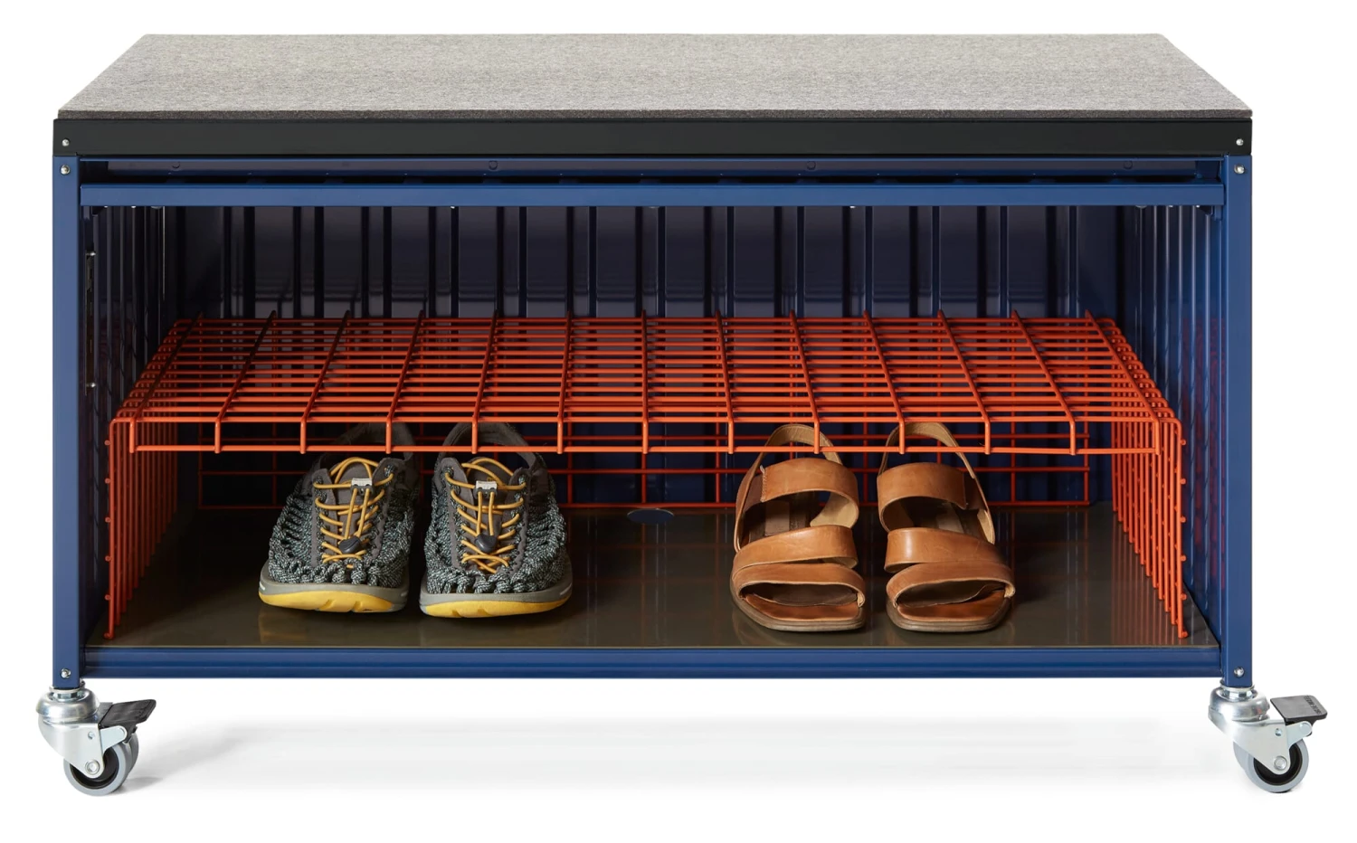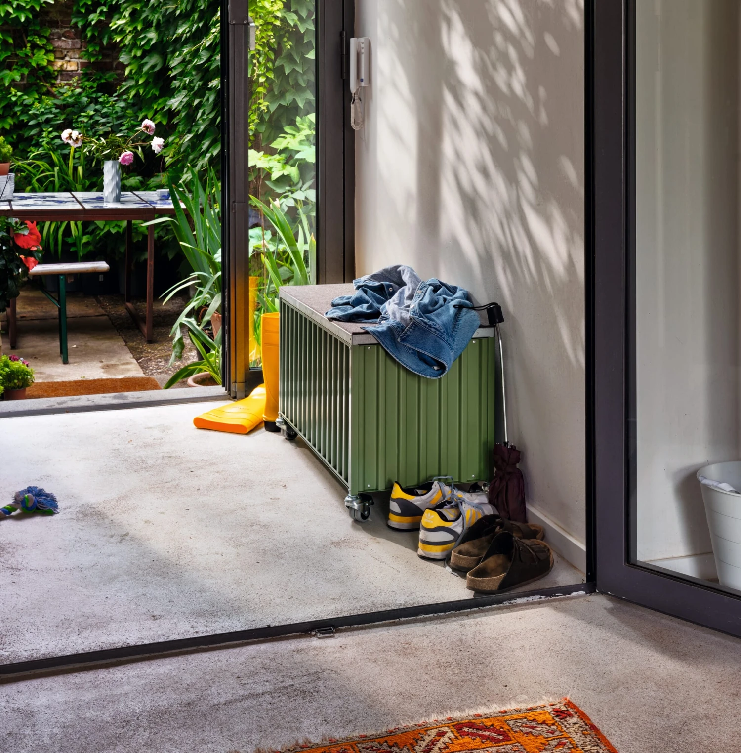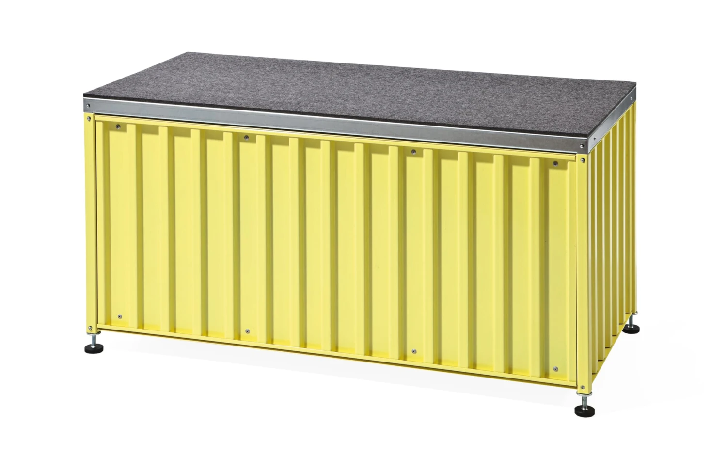 Synoniem voor opslag en transport: de container in zijn oervlak van gevouwen staal. Wij bieden dit kastmeubel in de geminiaturiseerde vorm van de overzeese container aan in vier verschillende uitvoeringen. Deze goed geproportioneerde opbergboxen dienen vele doeleinden en toepassingsgebieden. Alle containers hebben perforaties in de bodem om kabels door te voeren. Zowel de klassieke container als de platte en kleine containers hebben deuren die aan de bovenkant van de bak scharnieren, die bij het openen in de bovenkant van de bak schuiven en zo bijna volledig verdwijnen. De CONTAINER DS PLUS staat rechtop en heeft een conventionele scharnierende deur aan de zijkant.