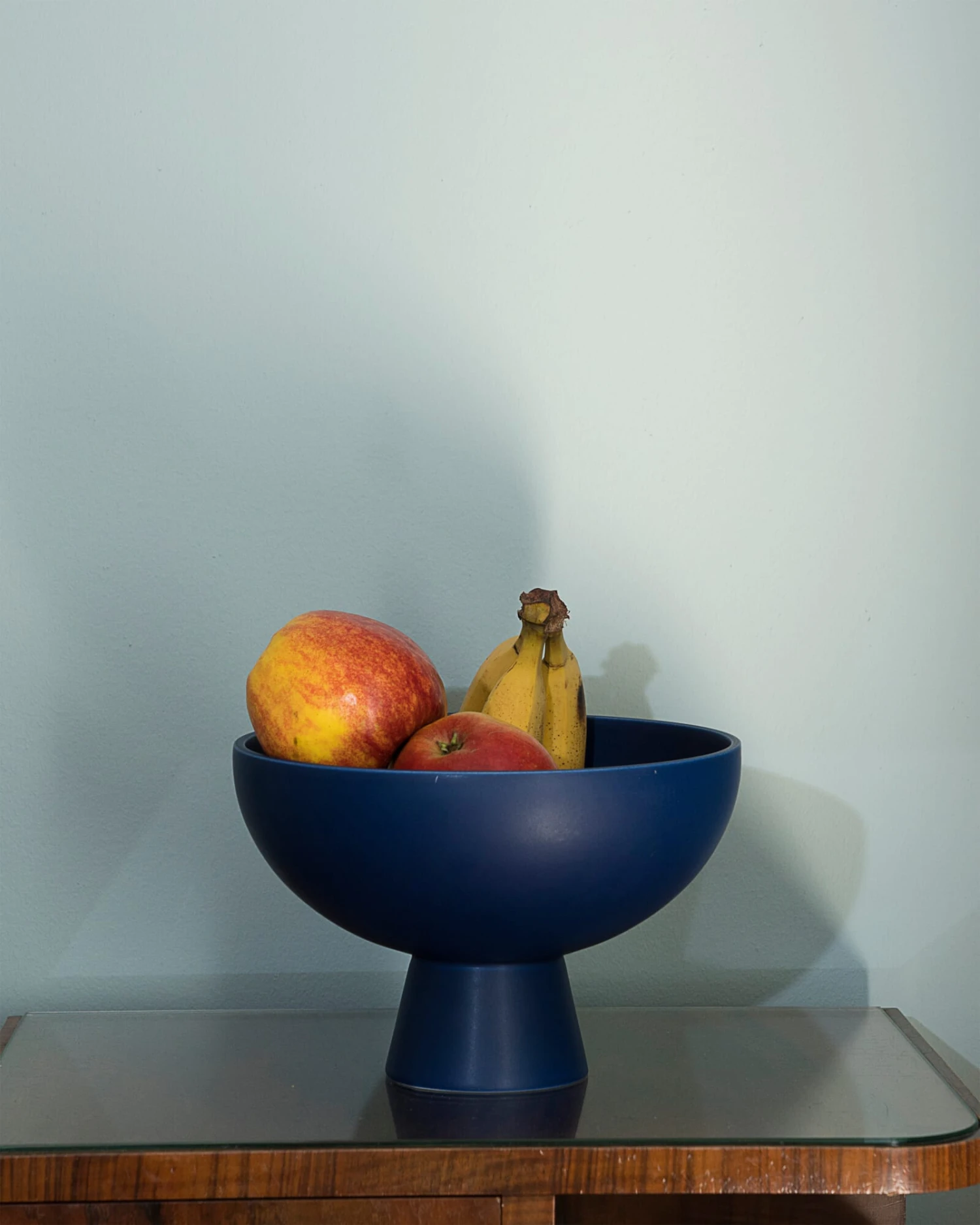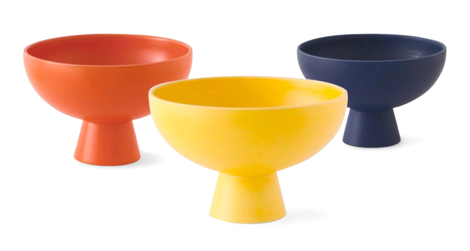 De schaal van de STRØM productfamilie: strakke geometrische vormen in een prachtige kleurkeuze en perfecte verhoudingen. De ontwerpen van Nicholai Wiig Hansen worden geproduceerd in Portugal – met behulp van traditionele steengoedtechnieken.