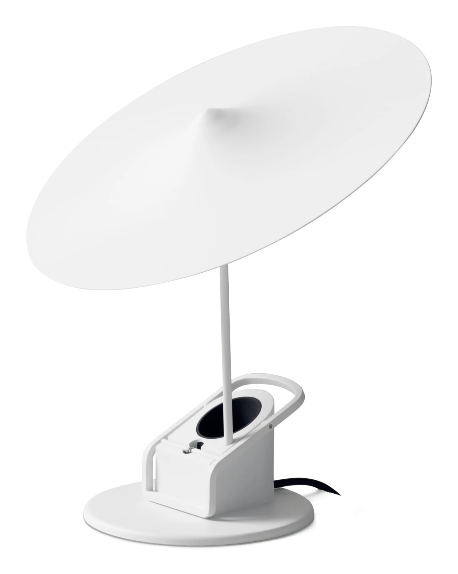 Dimensions: H 19 cm, kap: Ø 20 cm, voet: Ø 10,5 cm, spanwijdte klem: max. 6 cm Gewicht: 390 gMateriaal: Aluminium en staal, gepoedercoat; kunststof kabelDesign: Inga Sempé
