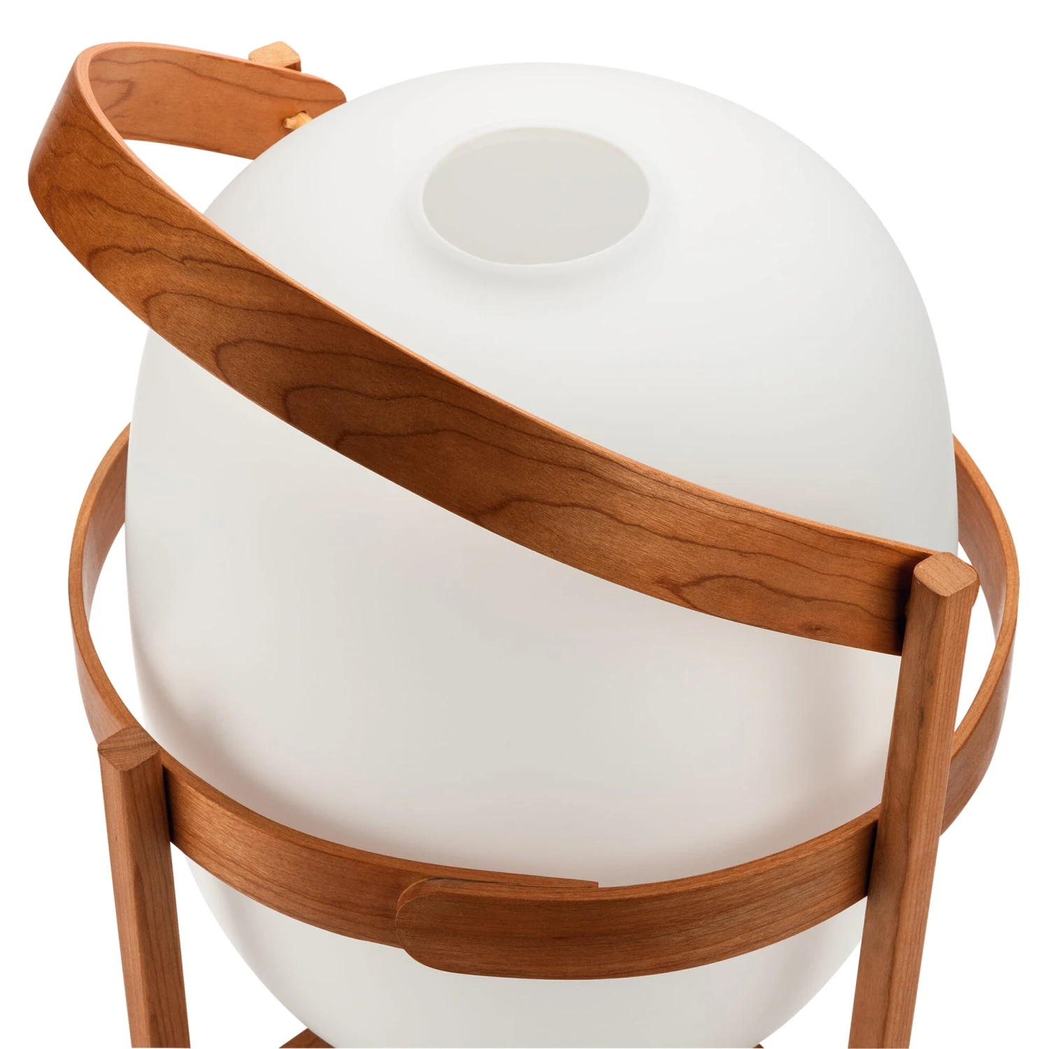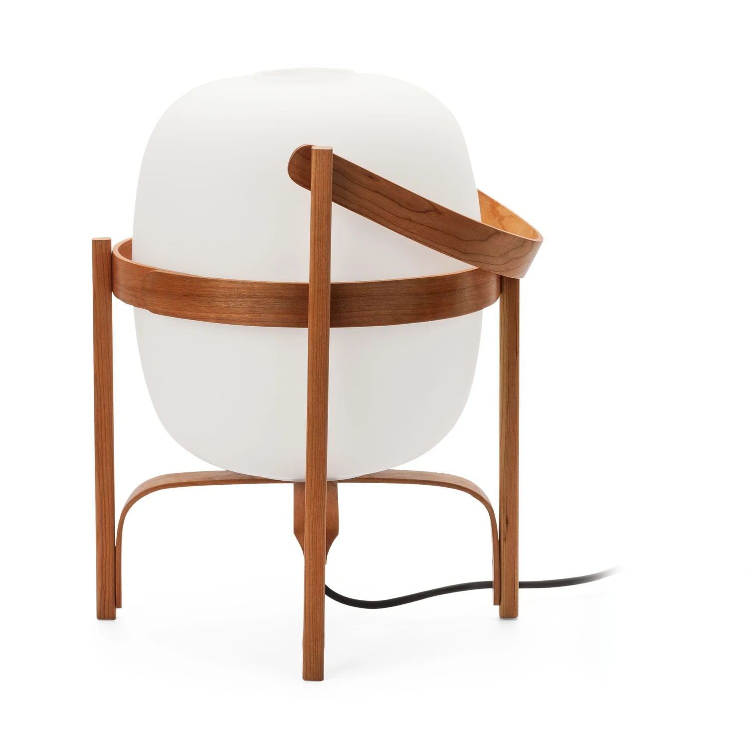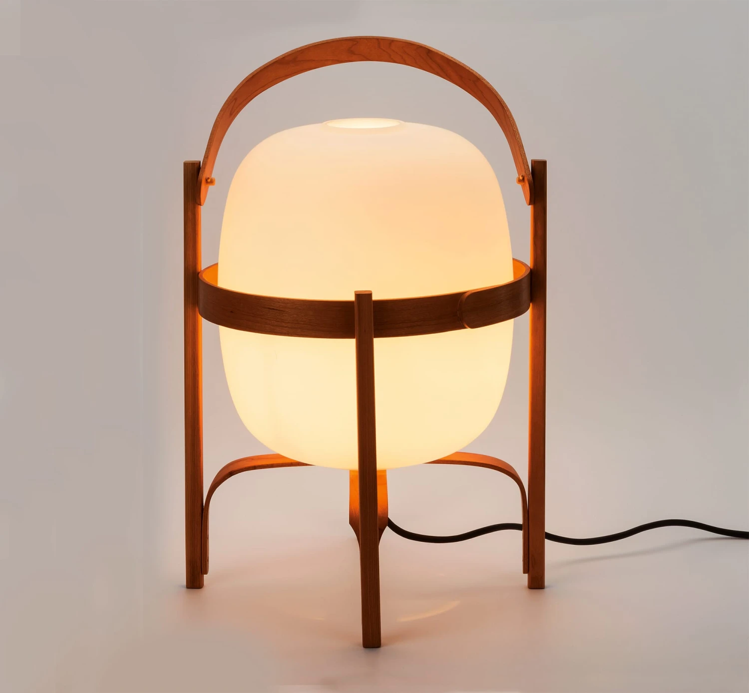 Cesta (mand) is de naam van deze veelzijdige armatuur, die vaak wordt gecategoriseerd als afkomstig uit Japan of Scandinavië. Ten onrechte, want het heeft zijn oorsprong in Barcelona. Miguel Milá, een icoon van het hedendaagse Catalaanse design, ontwierp het al in 1962, en het wordt sinds 1996 opnieuw geproduceerd door Santa & Cole in Barcelona. Met het zelfbeeld van een uitgever is het ondernemende bedrijf altijd op zoek naar bijzondere stukken van de ambachtelijke en industriële cultuur van de 20e eeuw. Het feit dat Santa & Cole de Cesta een evolutionaire impuls hebben gegeven alvorens hem opnieuw uit te brengen in samenwerking met Milá is een geluk: het oorspronkelijke rotan frame is nu gemaakt van gestoomd kersenhout, de ronde uitgesneden kap aan de boven- en onderkant is gemaakt van eenlaags geëtst glas in plaats van plastic. Met zijn draaibare handvat kan de lamp gemakkelijk van A naar B worden verplaatst – van de tafel naar de vloer bijvoorbeeld. Bij droog weer kan hij zelfs op een balkon of terras worden gebruikt. In ieder geval zorgt hij dankzij de dimschakelaar voor een zacht tot echt, ongewoon homogeen en altijd verblindingsvrij licht op de plaats van gebruik.