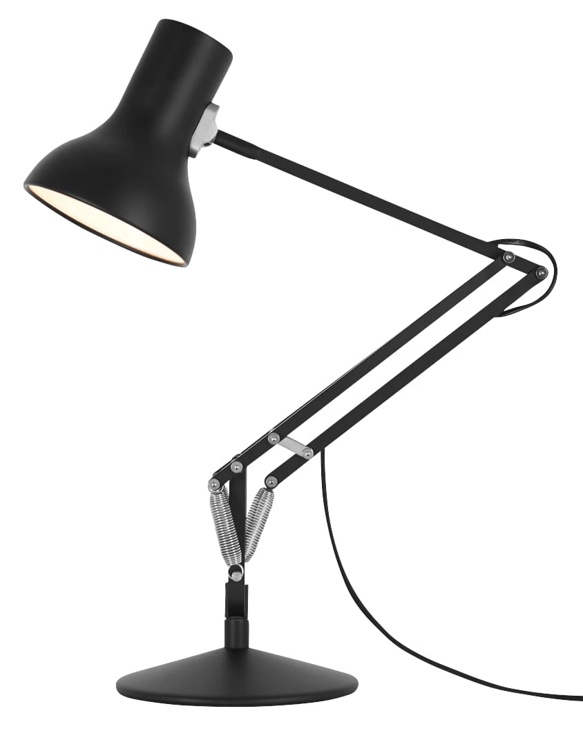 De kleine versie van onze ANGLEPOISE® TYPE 75 tafellamp. De oervoorloper van deze werklamp werd ontworpen op basis van de uitvinding van een nieuw type trekveer. De twee maten van de ANGLEPOISE® vormen de laatste fase in de ontwikkeling van dit type lamp. De structuur en de kap zijn van aluminium. De armatuur is stabiel, ongecompliceerd uit te lijnen en de armatuurkop heeft ook een kogelgewricht. Kabel: L 180 cm, Eurostekker. Stopcontact: E14. Het armatuur wordt geleverd met een LED-lamp. Stroomverbruik: max. 15 W.