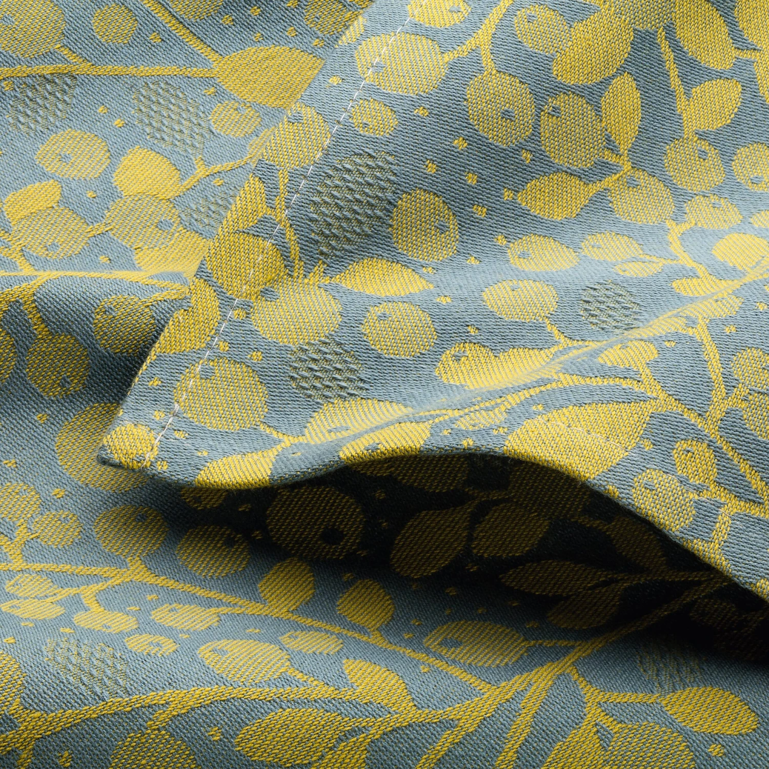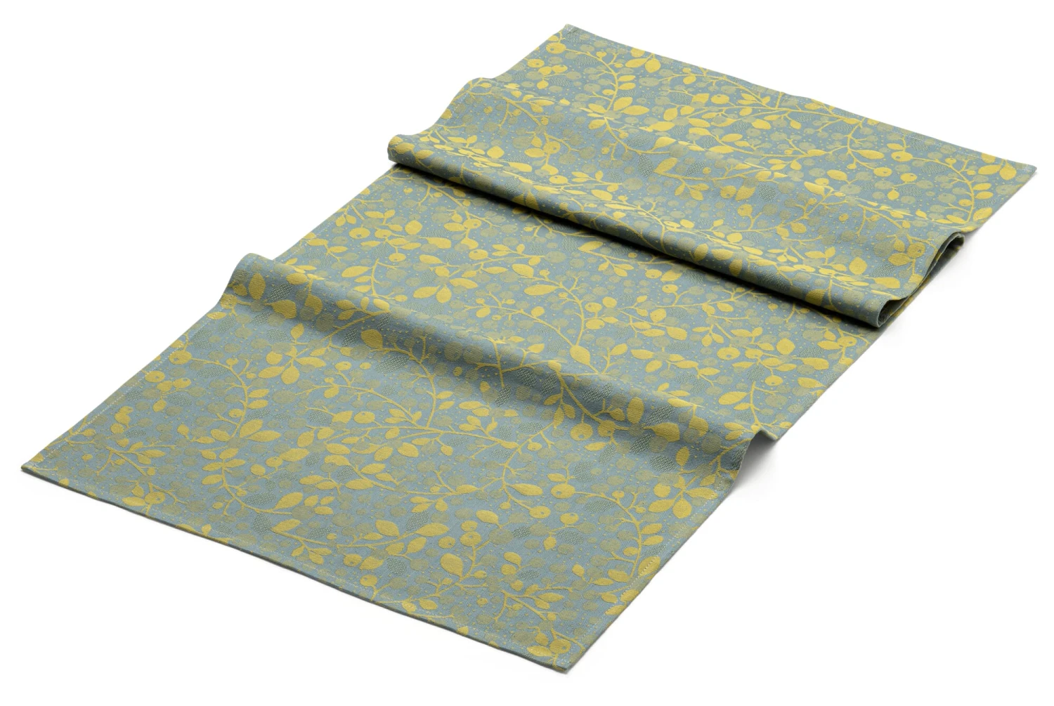 100% katoen. Herkomst India. Jacquard geweven. Basisgewicht 200 g/m². Garengetal in schering en inslag Nm 50/2. Krimp 8%. Gemaakt in Frankrijk. 50 × 120 cm