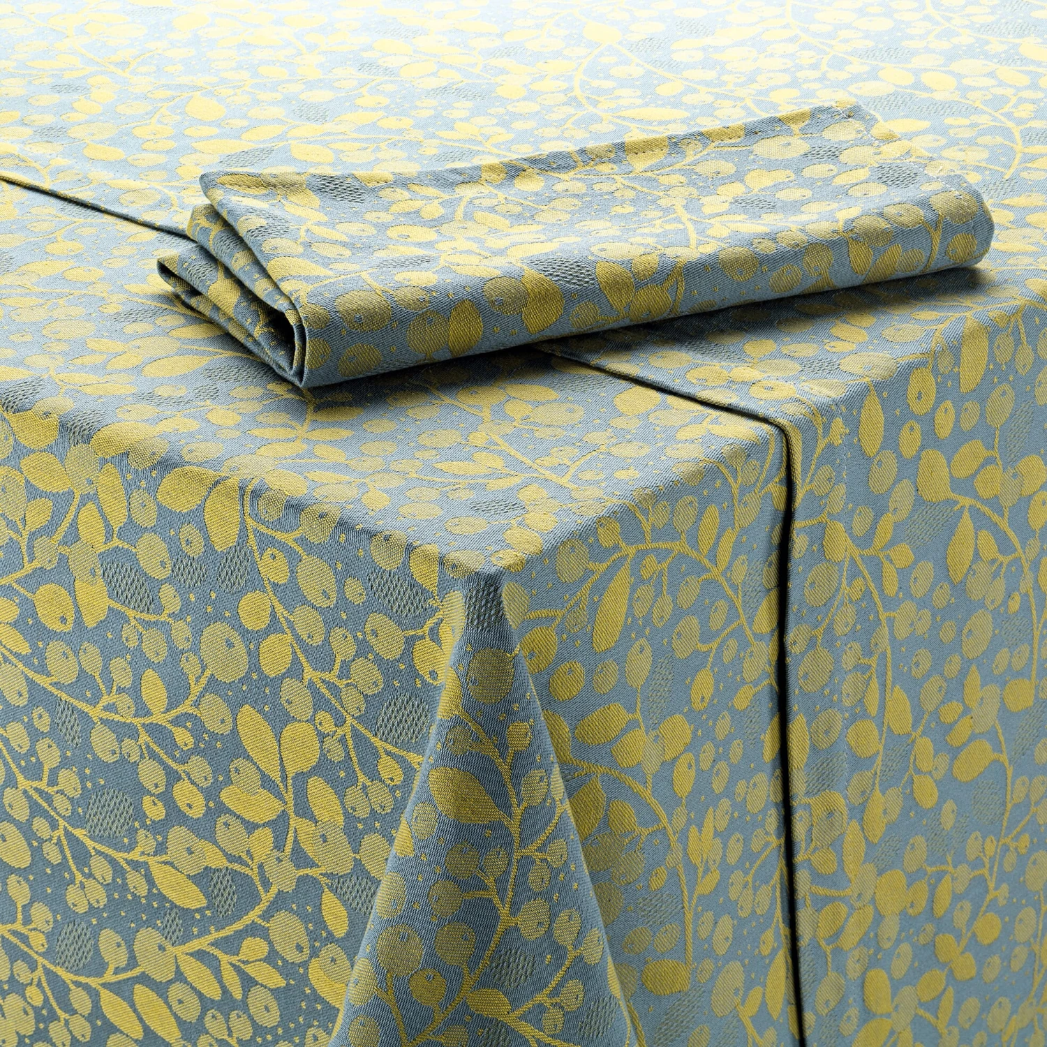 De twee ontwerpers van het Parijse label Mini Labo creëerden het ontwerp voor dit tafellinnen. Het kleurrijke patroon is – uiteraard – geweven in jacquardtechniek, waarbij de kleuren aan beide zijden van de stof tegenover elkaar staan.