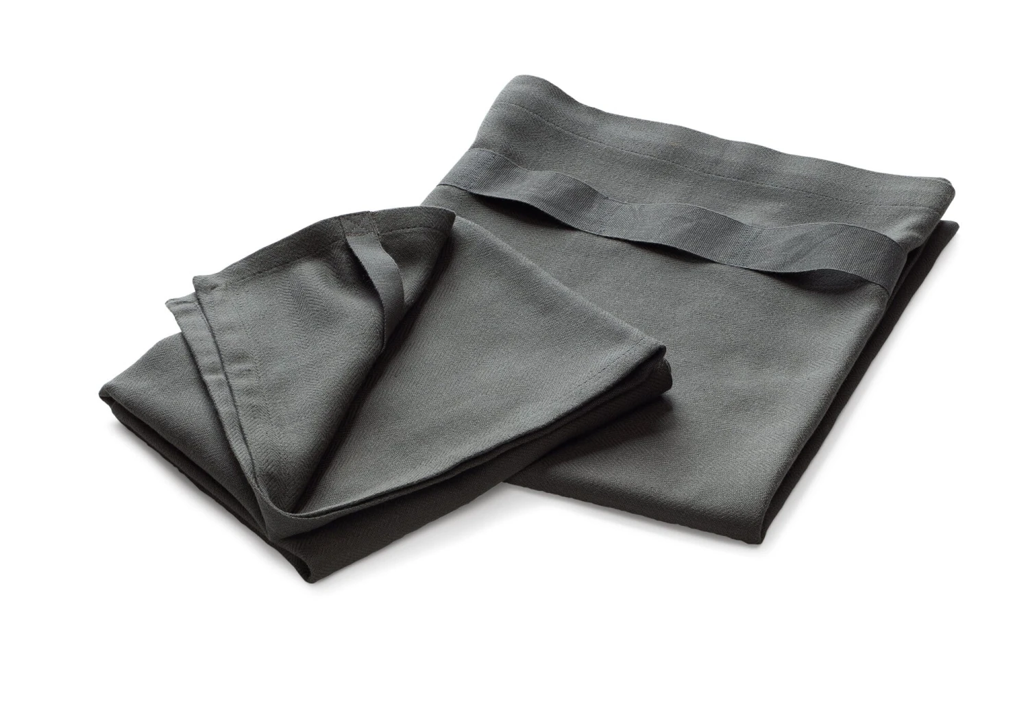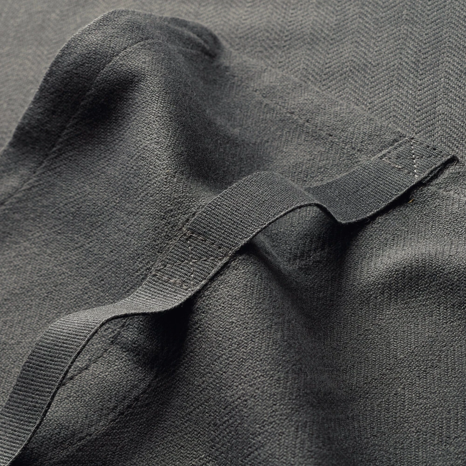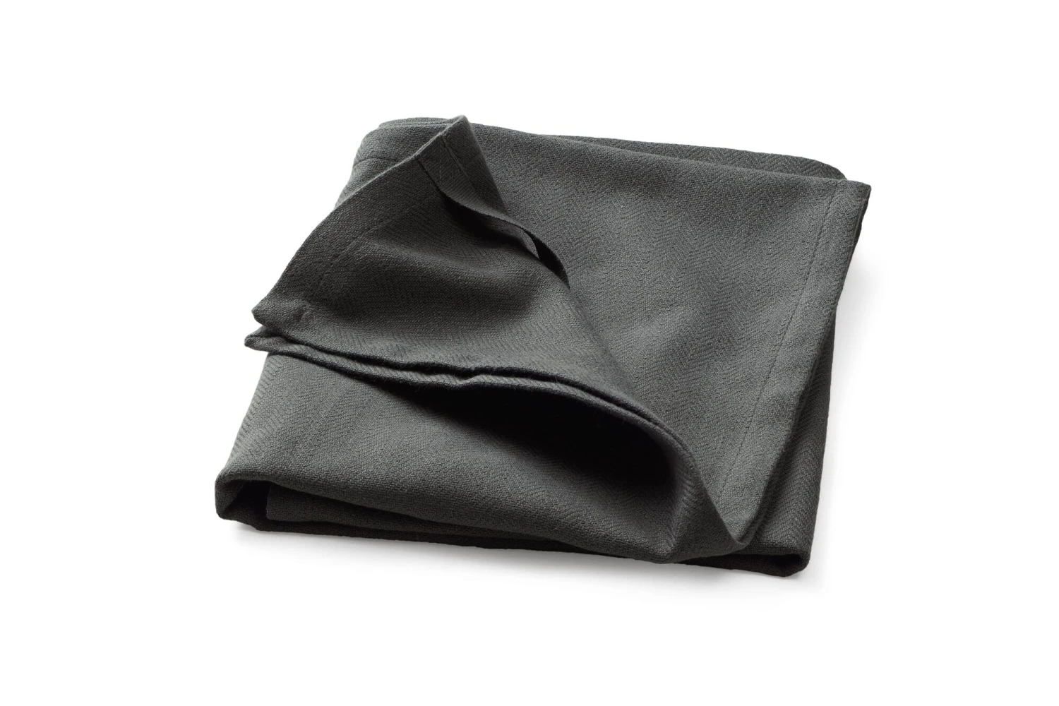 100% katoen. Herkomst India, geweven in visgraatmotief. Basisgewicht 180 g/m². Garengetal Nm 20/2. Machinewasbaar tot 60 °C. Krimp 5%. Made in India. Kleur donkergrijs. 53 × 86 cm