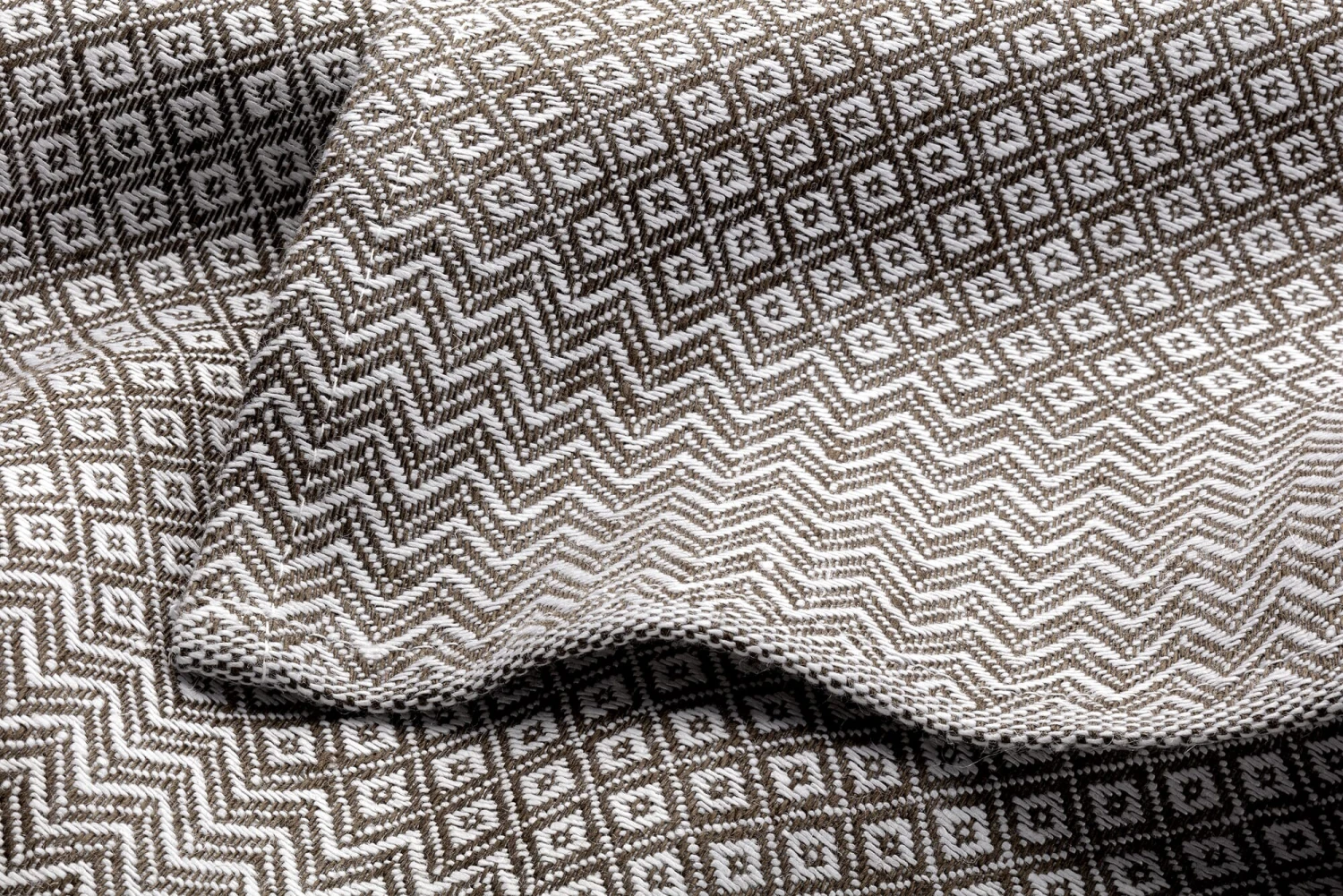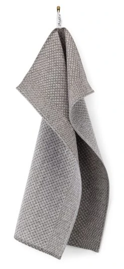 Het ruitjespatroon heeft een eeuwenoude traditie, die steeds weer opduikt in oude archieven, in wapenschilden, op kleding en zelfs op oude Zweedse drakenbeelden. Het is ook bekend in het Opper-Oostenrijkse Mühlviertel. De Leinenweberei Vieböck produceert er sinds 1832 fijne linnen stoffen – waaronder deze theedoek met ruitmotief. De lange zijden zijn omzoomd door een 6 cm breed zigzagpatroon. Vieböck gebruikt voor de theedoek zuiver linnen van Europees langvezelig vlas: voorgebleekt linnengaren in de ketting (dikte Nm 10) en garengeverfd linnen in de inslag (dikte Nm 13) worden geweven in een keperbinding. Dit maakt de doek tot een duurzaam, absorberend hulpmiddel in de keuken, want linnen is van nature vuilafstotend, antistatisch en pluisarm, dankzij het gladde oppervlak is het gemakkelijk schoon te maken en droogt het verbazingwekkend snel. Voor gebruik is het raadzaam het doekje twee tot drie keer te wassen, zodat het zijn volledige absorptievermogen ontwikkelt.
