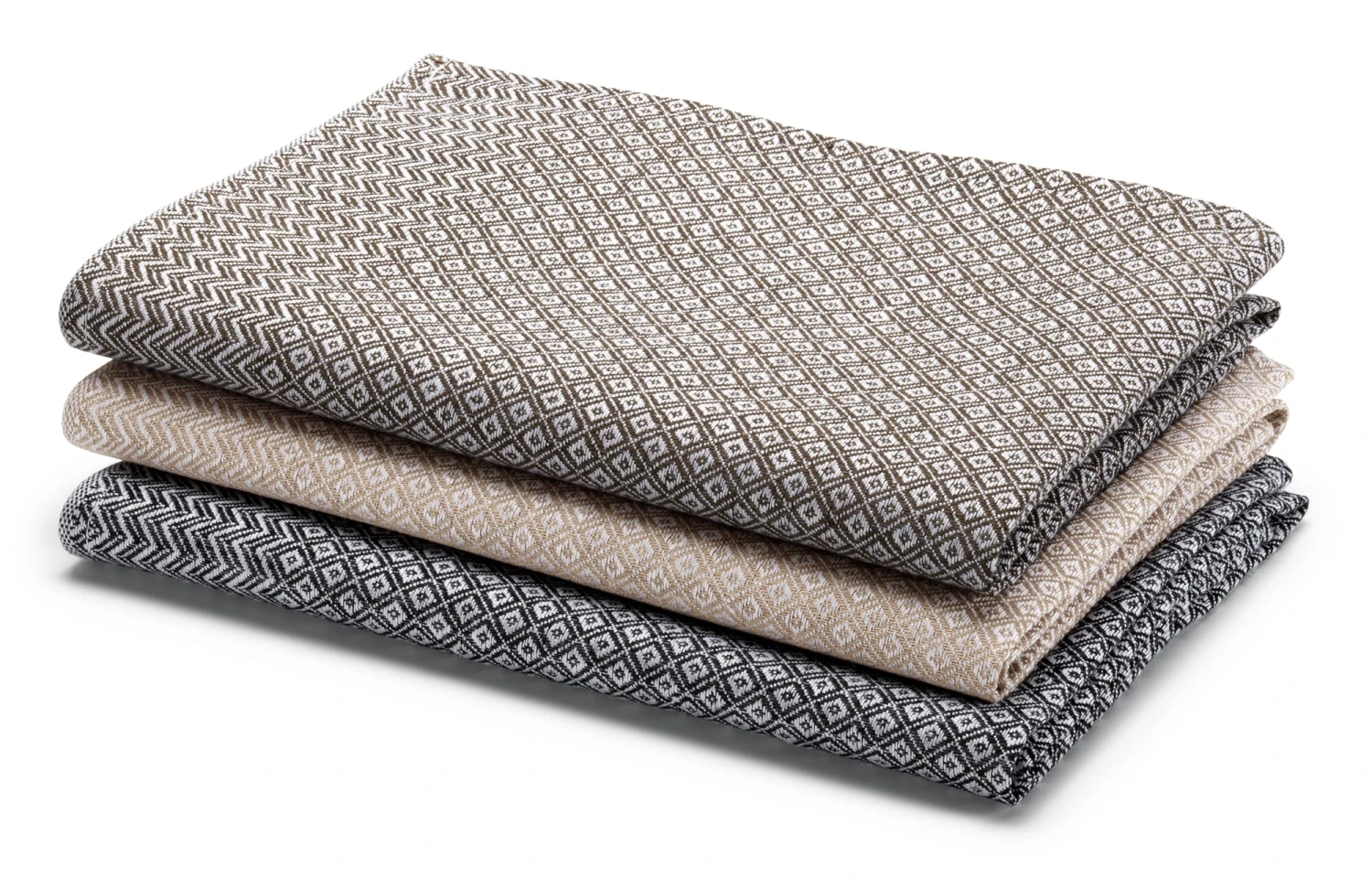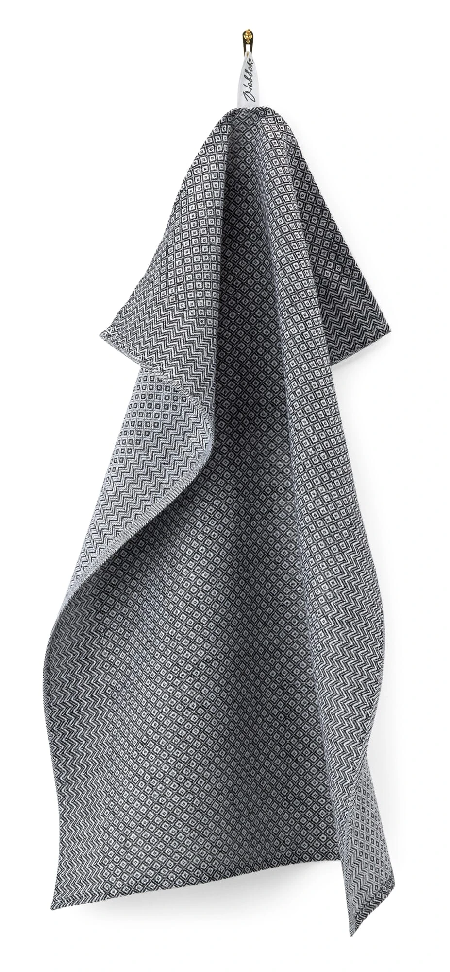 Het ruitjespatroon heeft een eeuwenoude traditie, die steeds weer opduikt in oude archieven, in wapenschilden, op kleding en zelfs op oude Zweedse drakenbeelden. Het is ook bekend in het Opper-Oostenrijkse Mühlviertel. De Leinenweberei Vieböck produceert er sinds 1832 fijne linnen stoffen – waaronder deze theedoek met ruitmotief. De lange zijden zijn omzoomd door een 6 cm breed zigzagpatroon. Vieböck gebruikt voor de theedoek zuiver linnen van Europees langvezelig vlas: voorgebleekt linnengaren in de ketting (dikte Nm 10) en garengeverfd linnen in de inslag (dikte Nm 13) worden geweven in een keperbinding. Dit maakt de doek tot een duurzaam, absorberend hulpmiddel in de keuken, want linnen is van nature vuilafstotend, antistatisch en pluisarm, dankzij het gladde oppervlak is het gemakkelijk schoon te maken en droogt het verbazingwekkend snel. Voor gebruik is het raadzaam het doekje twee tot drie keer te wassen, zodat het zijn volledige absorptievermogen ontwikkelt.