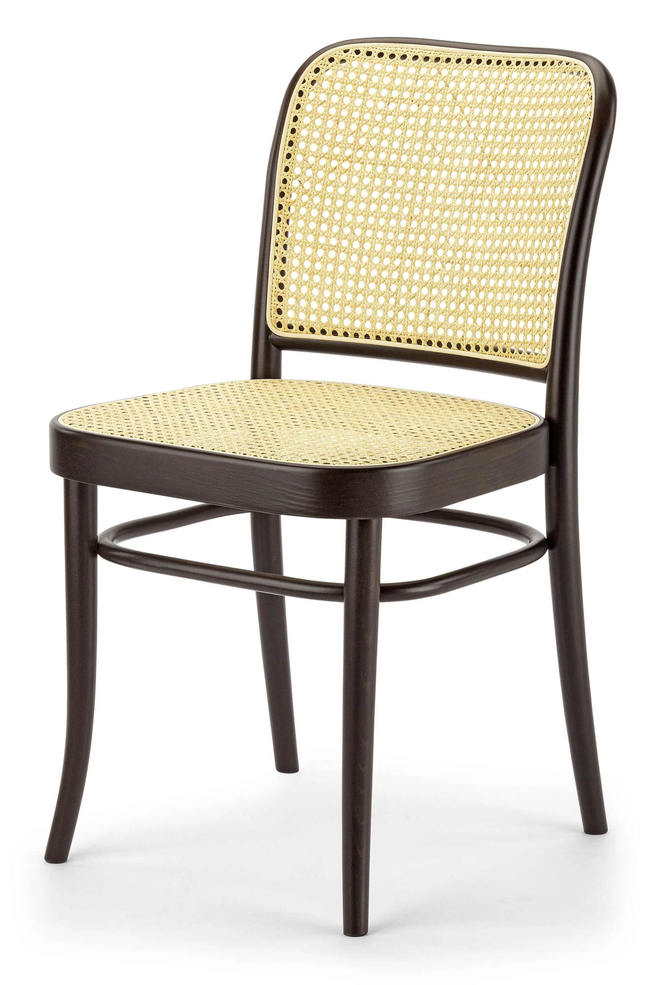Frame massief beukenhout (herkomst Slowakije), donker gebeitst of zwart gelakt. Zitting en rugleuning van vlechtwerk. Hoogte 80,5 cm, breedte 45 cm, diepte 53 cm. Zithoogte 46 cm. Gewicht 3,4 kg.