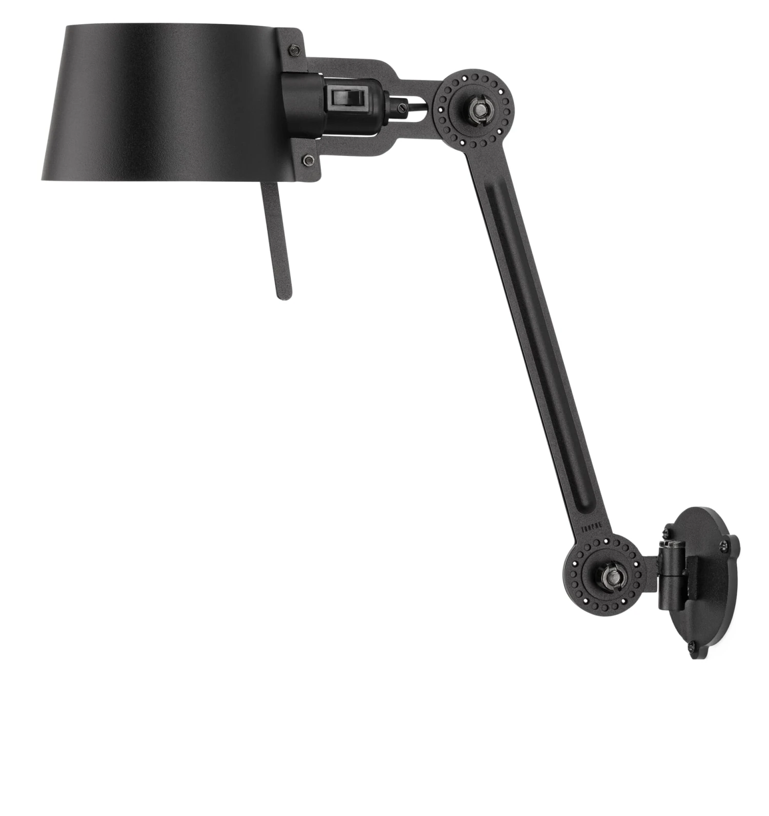 De armaturen van de Bolt-serie zijn puristisch, helder en functioneel. Alle modellen bestaan uit terugkerende, identieke onderdelen. Dat begint bij de zware gietijzeren voet die in België is gemaakt en loopt door tot de stalen armsegmenten, die net als de aluminium lampenkap zijn voorzien van een sterk reflecterende poedercoating. Elk scharnier kan vele malen worden versteld dankzij vijf stalen kogels tussen twee geperforeerde schijven met 23 gaten – maar alleen in hoeken die geen vingers kunnen pletten of de armatuur doen kantelen. De meegeleverde stelsleutel doet denken aan oude industriële armaturen. De lampenkappen zijn aan de boven- en onderkant open, zodat ze neerwaarts licht werpen op het te verlichten oppervlak en naar boven toe bijdragen aan de indirecte verlichting van de ruimte. De Bolt-serie wordt geschakeld via een drukschakelaar die zich net buiten de kap op de fitting bevindt.