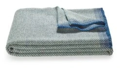 Deze deken is geweven in de zogenaamde Panamabinding, waarbij verschillende parallelle draden in schering en inslag worden geweven om een soort schaakbordpatroon te creëren. Hier liggen drie draden naast elkaar. De speciale functie: Er worden telkens drie kleurschakeringen gebruikt. De schering bestaat uit drie draden in grijstinten, de inslag uit drie verschillend gekleurde draden of, in het geval van de geelgrijze deken, uit drie tinten geel. Van een afstand gezien lijken schering en inslag monochroom, maar pas van dichtbij worden de gradaties zichtbaar. Het symmetrische weefsel en de trilogie van kleuren zorgen voor een levendig, maar uniform kleurenspel. De korte zijden van de deken zijn gebonden met bijpassend wolgaren.