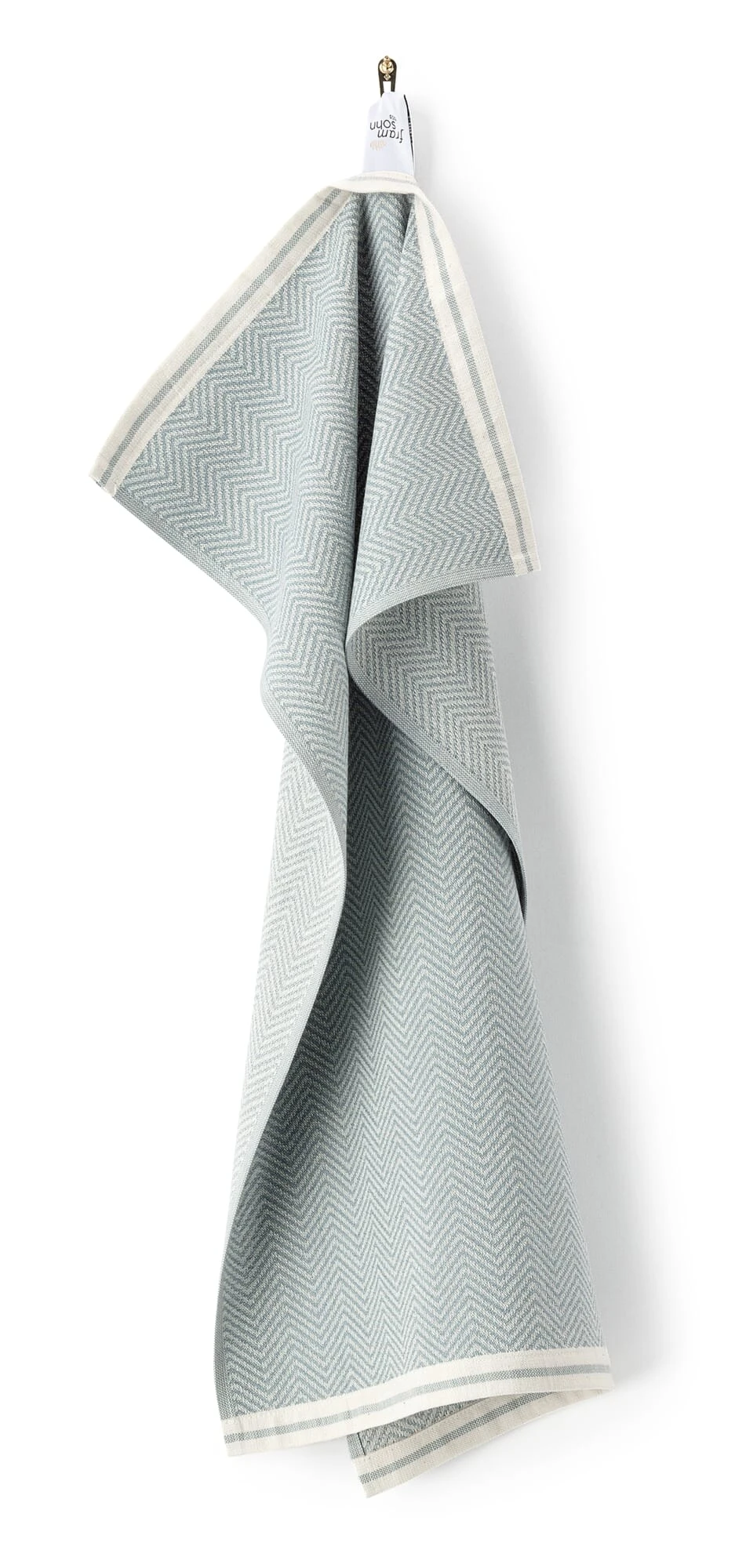 Deze vaatdoek met visgraatmotief komt uit de traditionele weverij Framsohn in het Neder-Oostenrijkse Waldviertel. Sinds 1908 worden alle werkzaamheden onder één dak uitgevoerd. Met een gemiddeld materiaalgewicht van 260 g/m² is de zachte katoenen stof absorberend en kan hij veel vocht opnemen. De stevige doek kan ook worden gebruikt voor handen tijdens keukenwerkzaamheden.