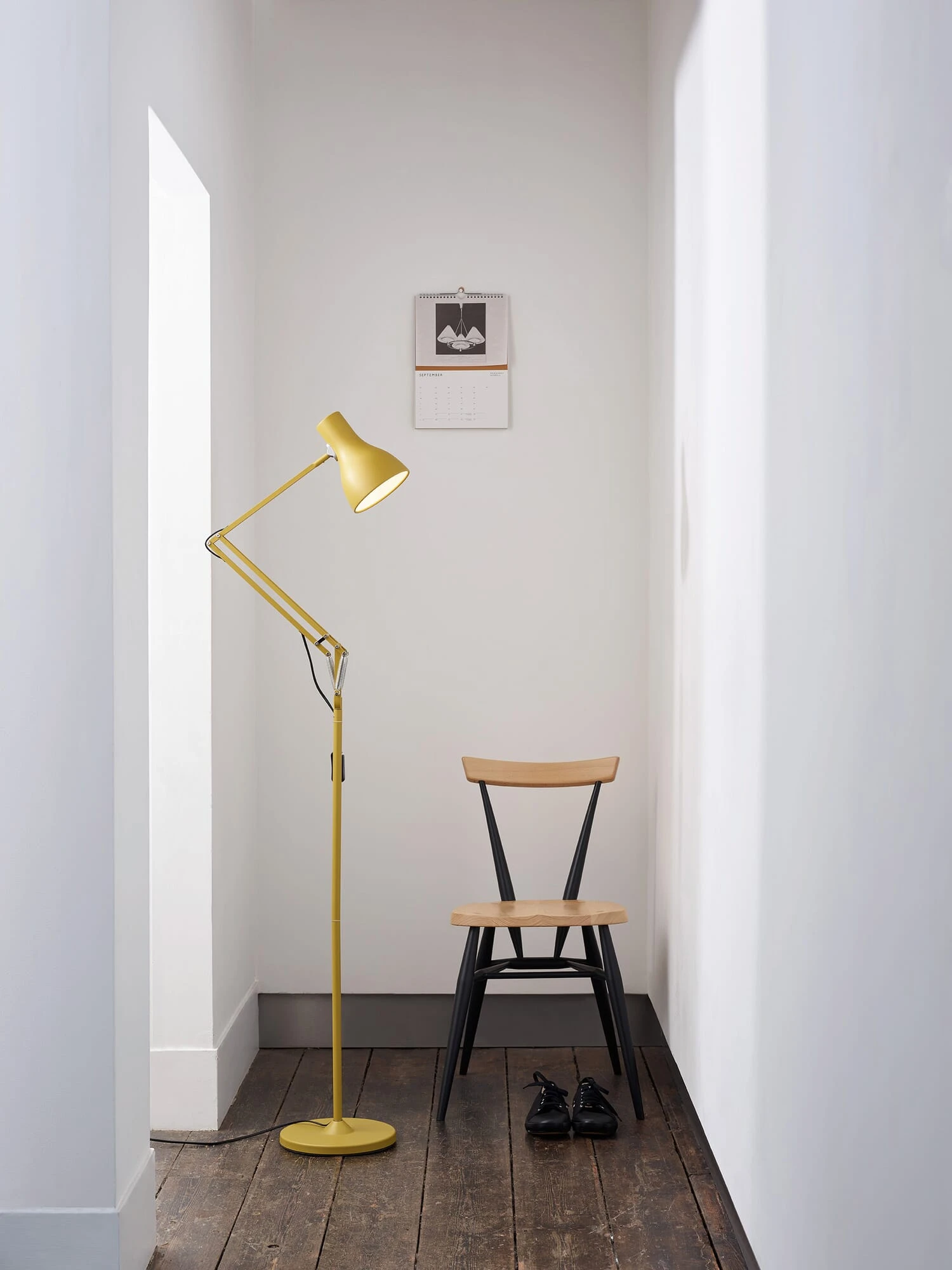 De vloerlamp van de lampenserie is gebaseerd op de technologie van de werklamp. De oervoorloper van deze werklamp werd ontworpen op basis van de uitvinding van een nieuw type trekveer. De ANGLEPOISE® TYPE 75 vertegenwoordigt de laatste fase in de ontwikkeling van dit type armatuur. De structuur en de kap zijn van aluminium. De armatuur is stabiel, ongecompliceerd uit te lijnen en de armatuurkop heeft ook een kogelgewricht. In een speciale editie, die tot stand kwam in samenwerking met de Britse modeontwerpster Margaret Howell, bieden wij hier de lamp aan in drie speciale kleuren mat gelakt en in het oppervlak licht gestructureerd. Kabel: L 270 cm, Eurostekker. Stopcontact: E27. De lamp wordt geleverd met een LED-lamp. Stroomverbruik: max. 20 W.