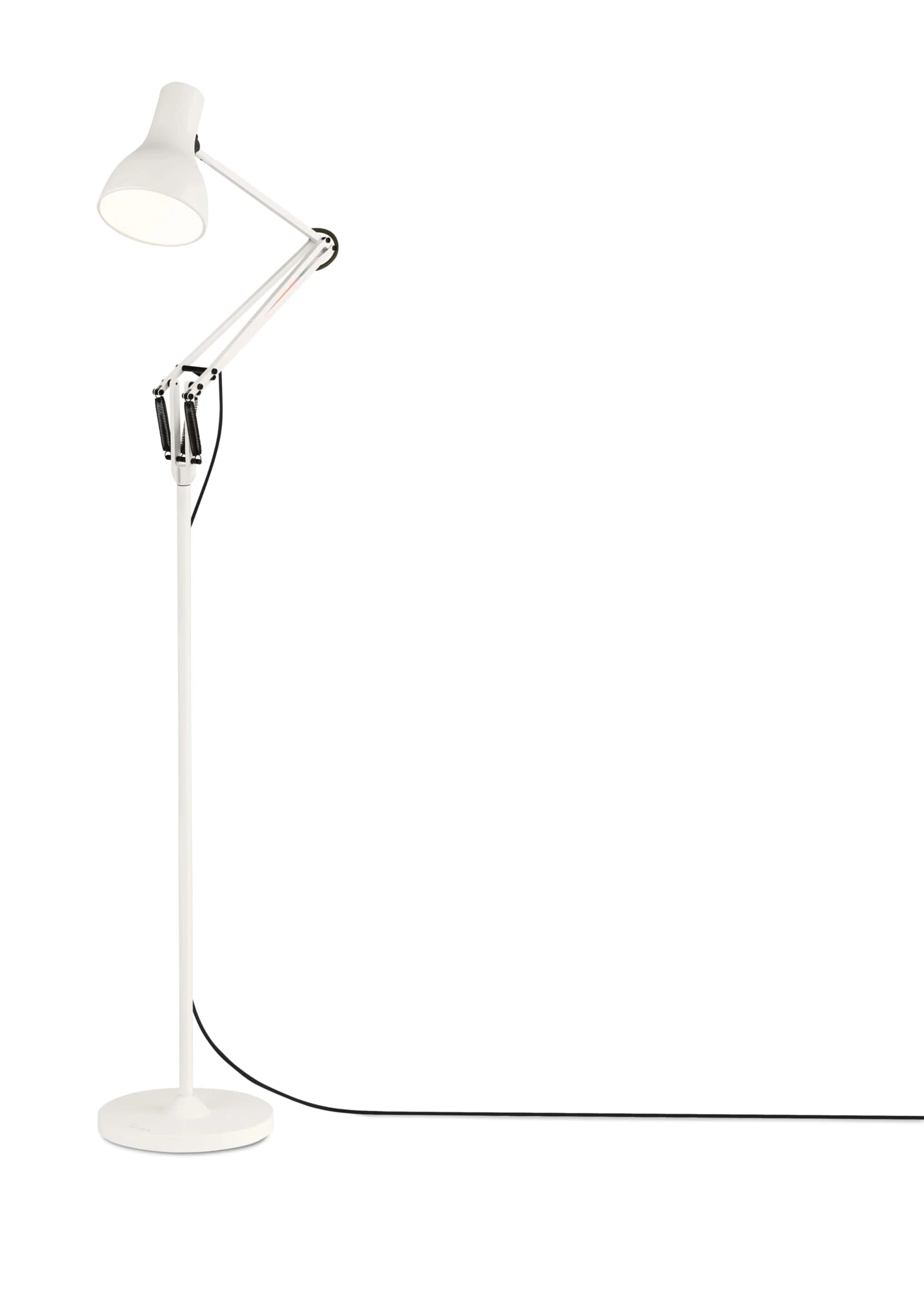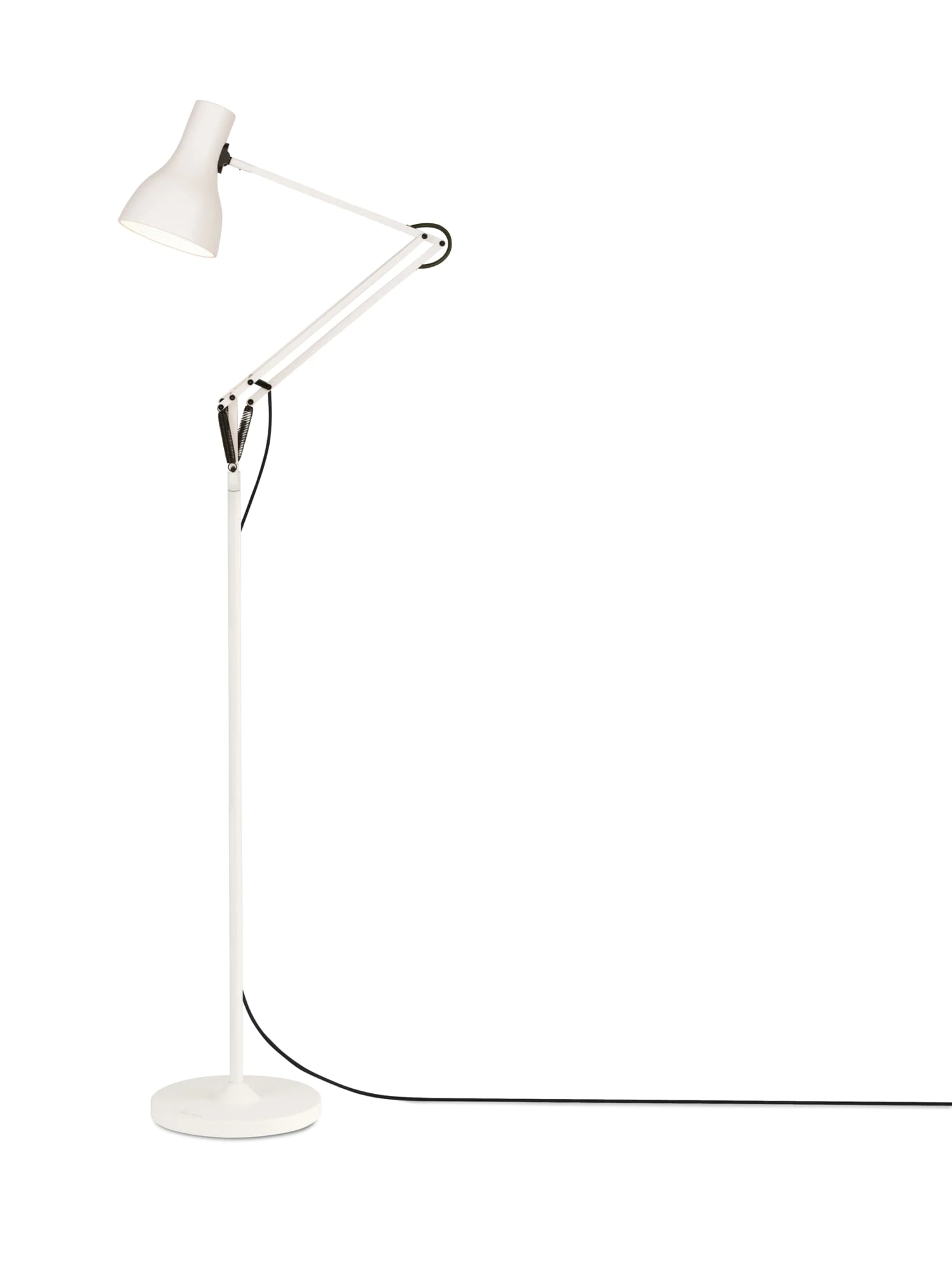 In een laatste Paul Smith editie wordt de ANGLEPOISE® vloerlamp gepresenteerd in mat wit met zwart vernikkelde fittingen en een verfijnd kleurenspel op de centrale scharnierarm, typisch voor Sir Paul. De vloerlamp van de armatuurserie is gebaseerd op de technologie van de werklamp. De oervoorloper van deze werklamp werd ontworpen op basis van de uitvinding van een nieuw type trekveer. De ANGLEPOISE® TYPE 75 vertegenwoordigt de laatste fase in de ontwikkeling van dit type armatuur. De structuur en de kap zijn van aluminium. De armatuur is stabiel, ongecompliceerd uit te lijnen en de armatuurkop heeft ook een kogelgewricht. Kabel: L 270 cm, Eurostekker. Stopcontact: E27. Het armatuur wordt geleverd met een LED-lamp. Stroomverbruik: max. 20 W.