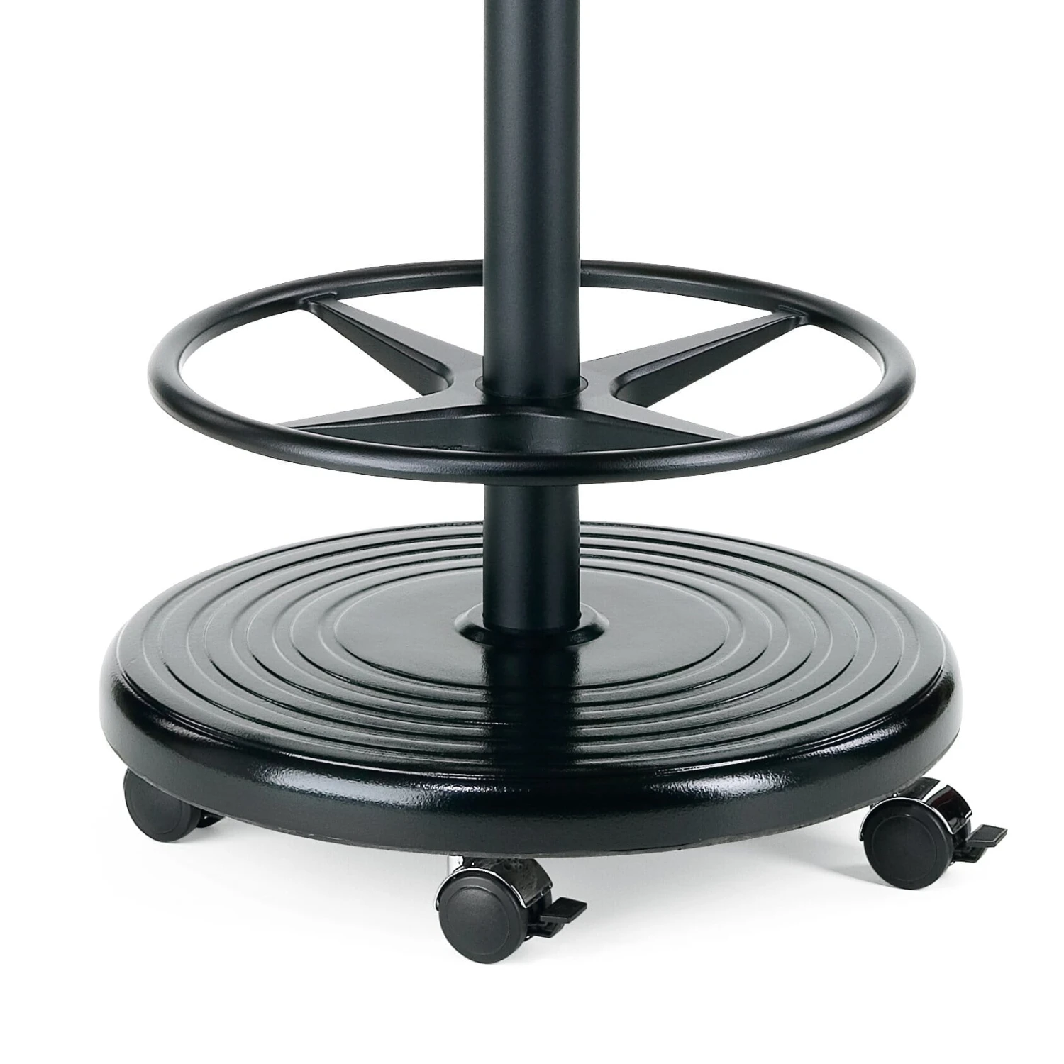 Optionele voetsteunring voor onze zit-sta-tafel. Het is een zeer nuttig middel om één been tegelijk te ontlasten bij het staan; vooral aan te bevelen als de tafel voornamelijk in staande positie wordt gebruikt. De voetsteunring kan ook achteraf worden gemonteerd.