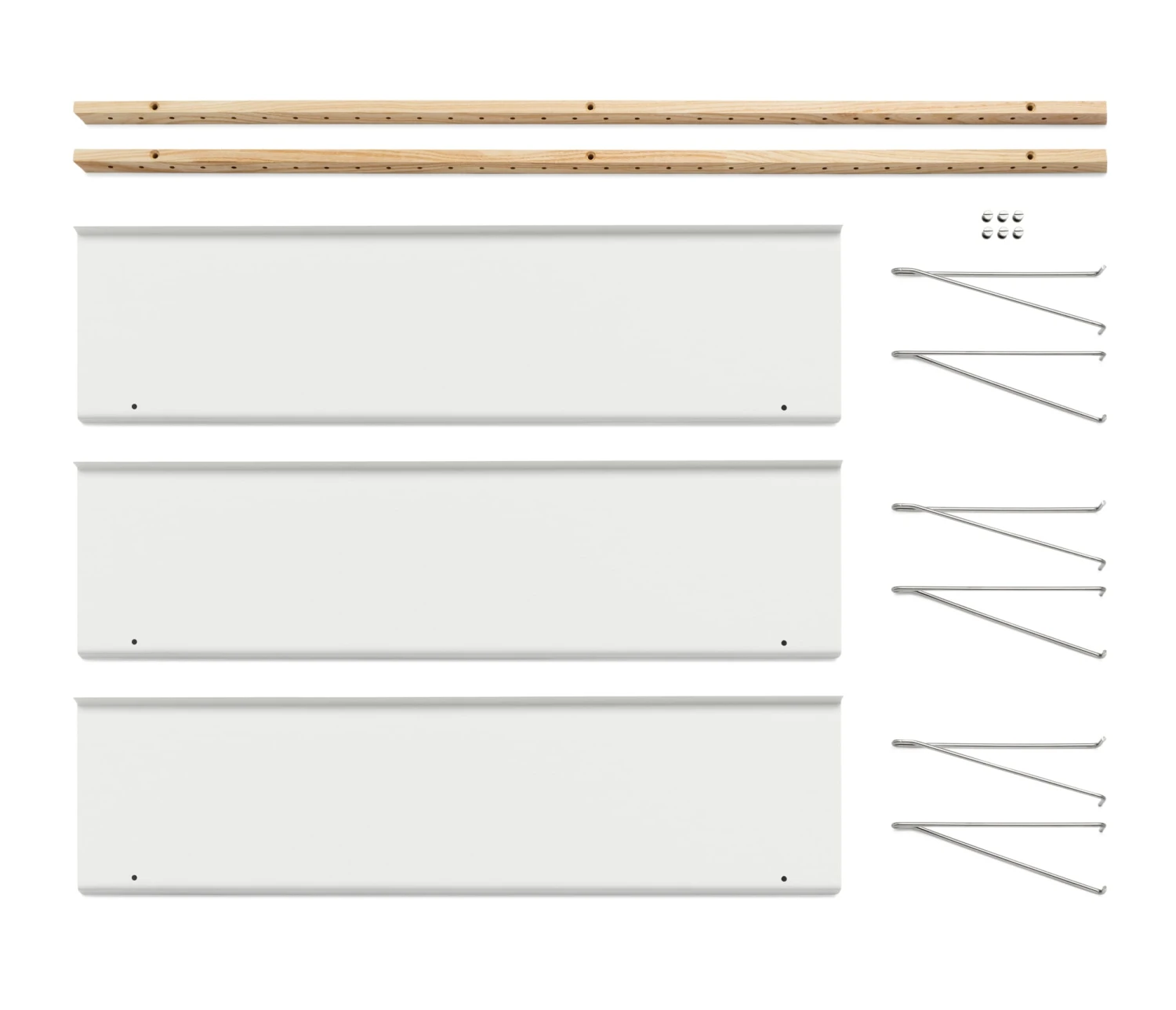Afmetingen: B 80 × D 23 × H 106 cmGewicht: 5,5 kgMateriaal: Wandprofiel: Essen, massief (herkomst: Canada); Planken: plaatstaal, poedercoating; Plankendragers: roestvrij staaldraadDesign: Michael von Matuschka