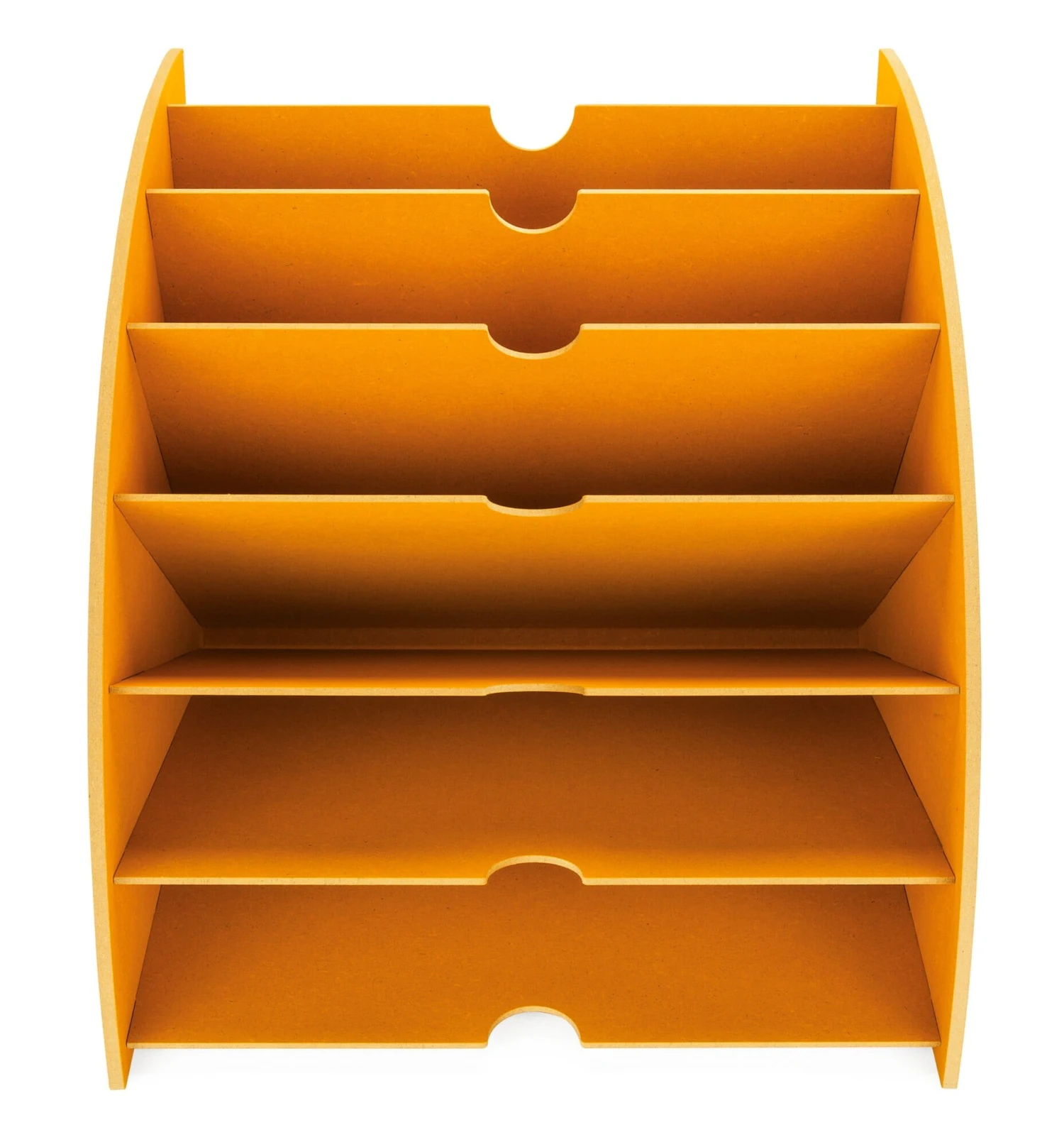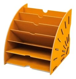 Tijdschriftenverzamelaar, poststation en dossier in één. Met 6 vakken voor het opbergen, verzamelen en sorteren van boekjes, strips, A4-papier en co. Bouwpakket met 10 HDF-platen, beschilderd met speelgoedverf, en 30 rubberen ringen om de steekverbindingen te bevestigen. Gemonteerd: H 30 × B 33 × D 33 cm. Gewicht 1,8 kg. Kleur zwart. Niet stapelbaar. Zonder keukengerei.