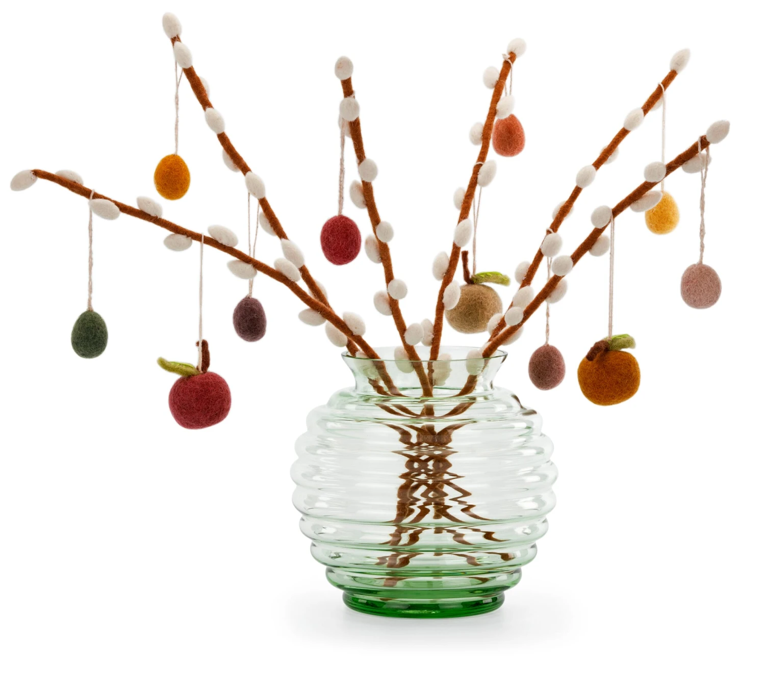 Immers, een Pasen zonder wilgenkatjes zou geen echt Pasen zijn – je ontzegt de paashaas immers niet zijn paaseieren. De met harige knoppen bedekte takken van de wilg danken hun betekenis aan christelijke gebruiken. Elk jaar op Palmzondag herdenken christenen de intocht van Jezus in Jeruzalem: volgens de traditie legde de juichende menigte de weg van de Messias af met palmbladeren. Aangezien palmbomen in Europa niet groeien (althans niet vrijwillig), vooral niet in rooms-katholieke streken, werd de wilgenboom, die al in maart uitloopt, gekozen voor kerkversieringen en processies. Tegenwoordig heeft deze traditie echter zijn valkuilen, omdat de in onze regio inheemse salmiakwilgen (Salix caprea) nu beschermd zijn. Met reden: als vroege bloeiers zijn wilgen een belangrijke bijenweide, die bijen, hommels, vlinders en vele andere insecten het eerste essentiële voedsel na de winter bieden. Deze gevilte wilgenkatjes zijn een prachtig alternatief dat ook bij natuurbeschermers een glimlach op het gezicht kan toveren – en des te duurzamer omdat je de takken het hele voorjaar en ook volgend jaar weer tot een aantrekkelijk boeket kunt schikken.