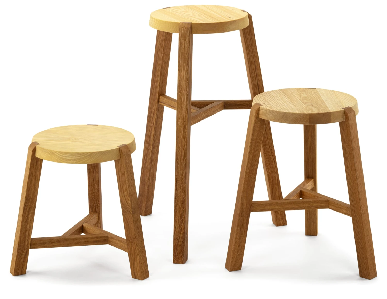 Auerberg vervaardigt de Y-kruk van inlands, d.w.z. Beiers massief hout, dat op de beste manier wordt bewerkt: De afzonderlijke delen zijn precies op maat gezaagd en fijn geschuurd, alle verbindingen zijn zo ontworpen dat ze wrijvingsgesloten zijn (d.w.z. de drie poten ontmoeten de twee horizontale platen niet in een rechte hoek, maar onder een lichte hoek – dit zorgt voor stabiliteit door statische wrijving) en zijn onzichtbaar gedeblokkeerd met houten deuvels. De oppervlakken zijn geolied. De kruk is verkrijgbaar in drie maten, een kleine kruk van 35 cm, een middelhoge kruk van 45 cm en een hoge barkruk van 65 cm. En dankzij de vlakke zitting kunnen ze natuurlijk allemaal ook als bijzettafel worden gebruikt.