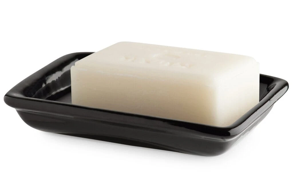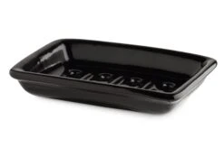 Het klassieke porseleinen zeepbakje, gemaakt in Duitsland. Onderaan de mal rust de zeep op drie verhogingen in de mal.