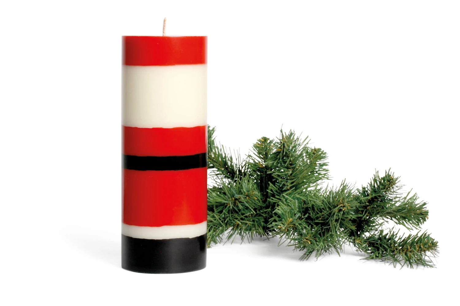 De dikke kerstman – mooi herkenbaar in de typische kleurstelling. Kerstmis kan dus komen en daarvoor is hier 73 uur brandtijd met vaste gekleurde was, die met de hand kleurlaag voor kleurlaag wordt gegoten. De kaarsen komen uit de eerlijke handel en zijn paraffinevrij.